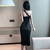 ナイトクラブの女性のナイトクラブイブニングドレスライト高級ニッチハイエンドセクシーなスロープネックミッドレングスサスペンダードレス yeyij3805436330