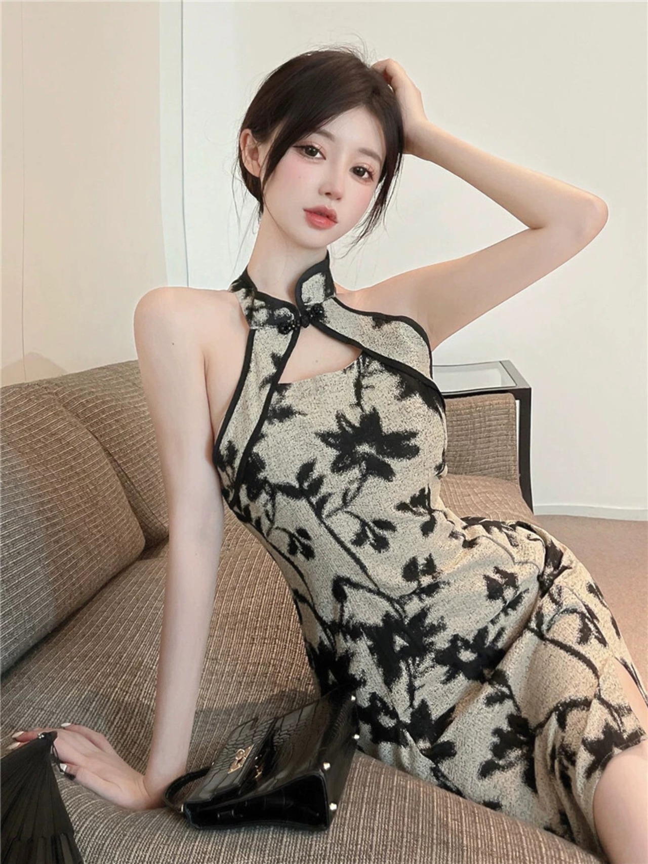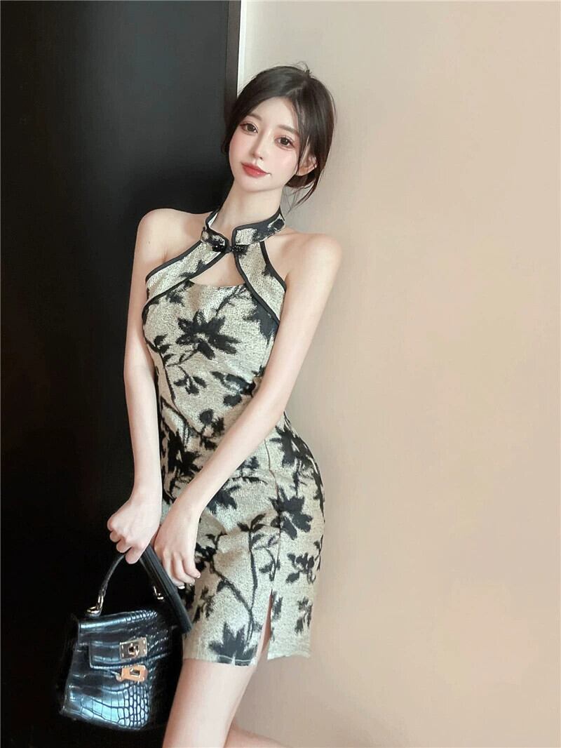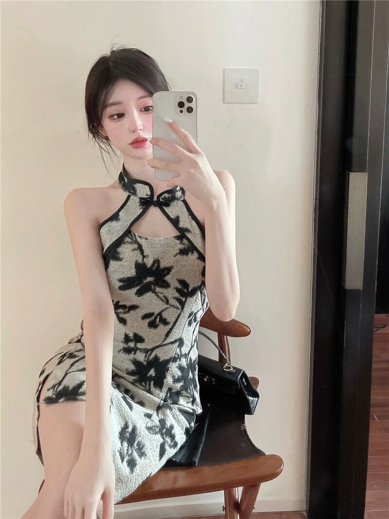 生放送アンカー服若い新しい中国風のセクシーな中空肩なしホルターネック改良されたチャイナ ドレス yeyij4617187104