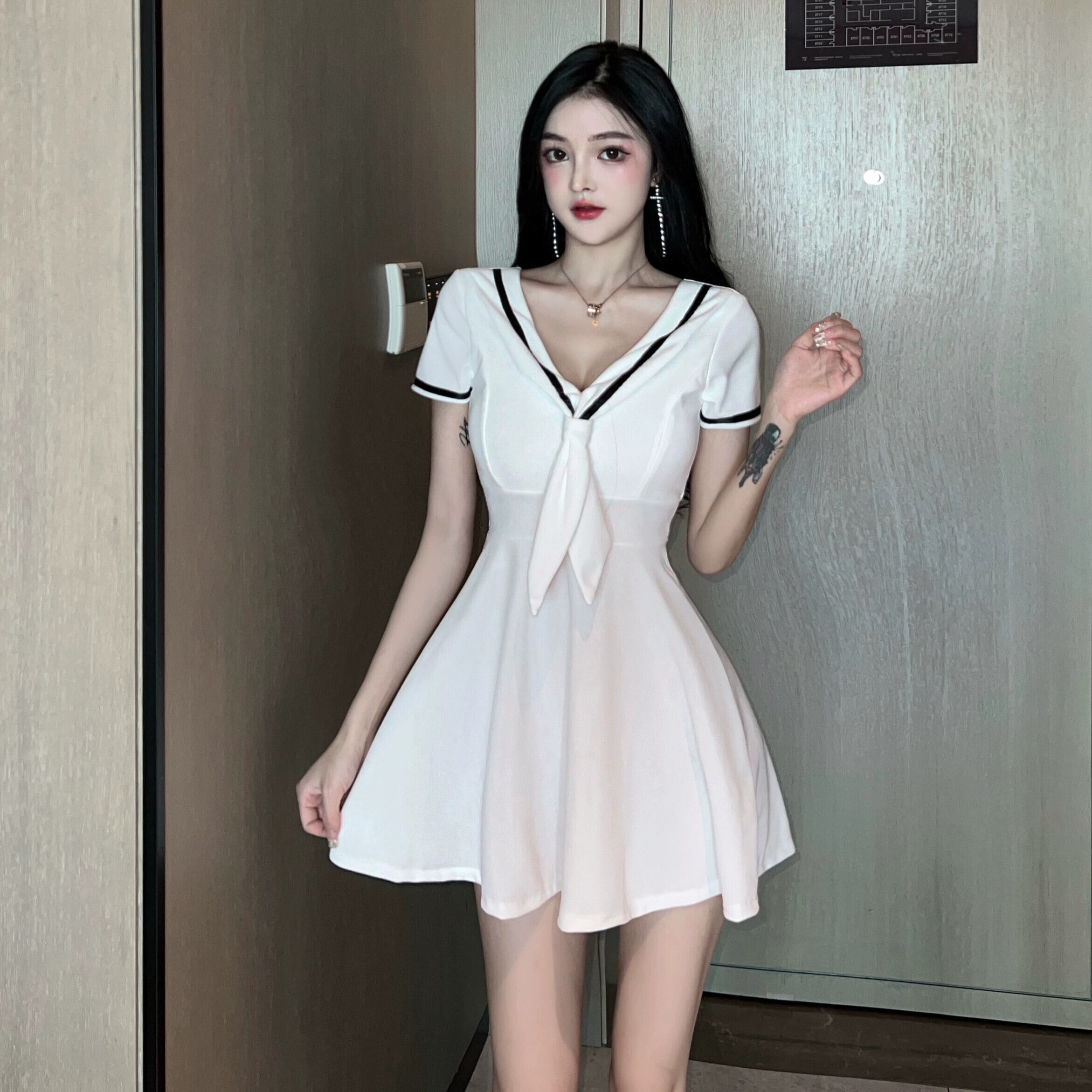 ナイトクラブ女性のナイトクラブ技術者作業服ナイトクラブセクシーなローカット V ネックネイビースタイルウエスト痩身ドレス Vネック yeyij22679433149