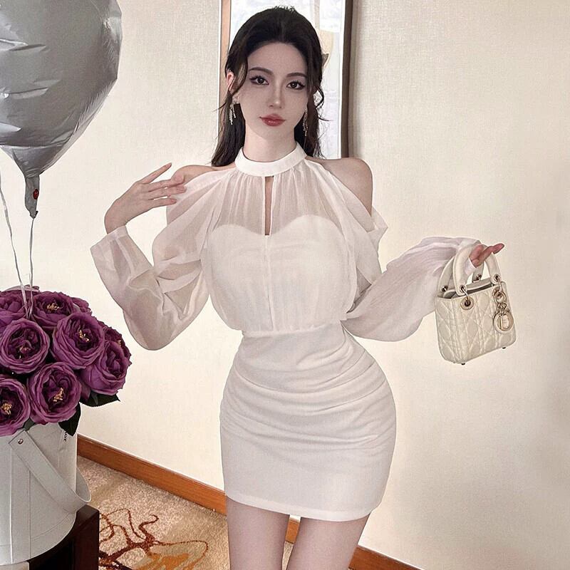 今年の春先に人気の新作デザインは、ウエスタン風の女神風のセクシーなオフショルダーフェイクツーピースホルターネックドレスです。 スプリング 春物 yeyij26451795593