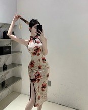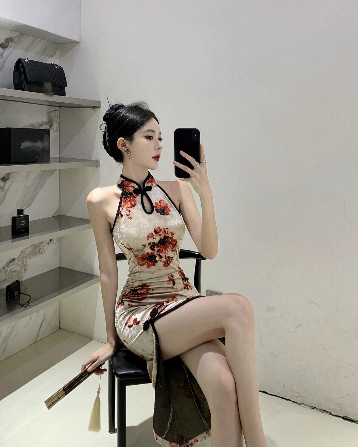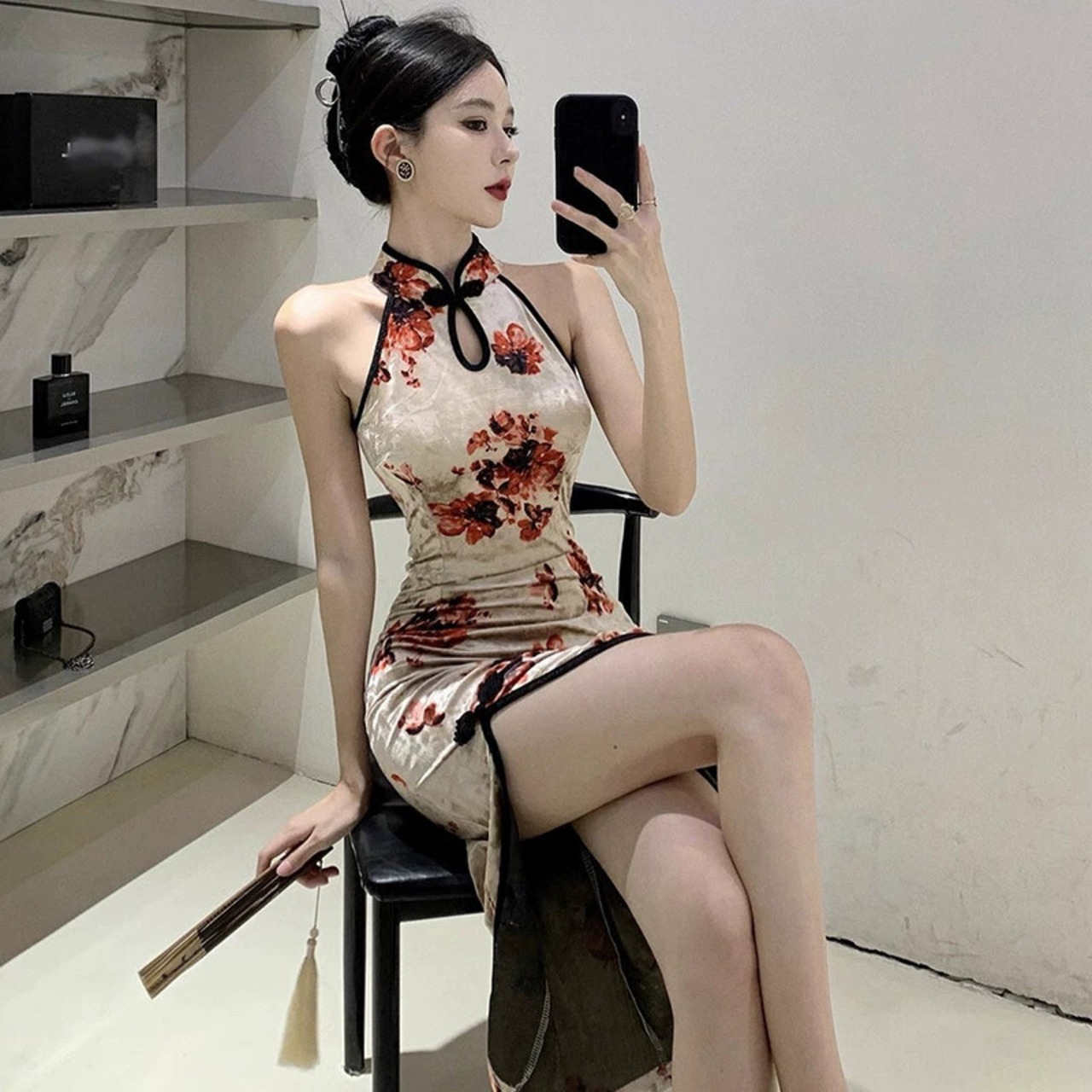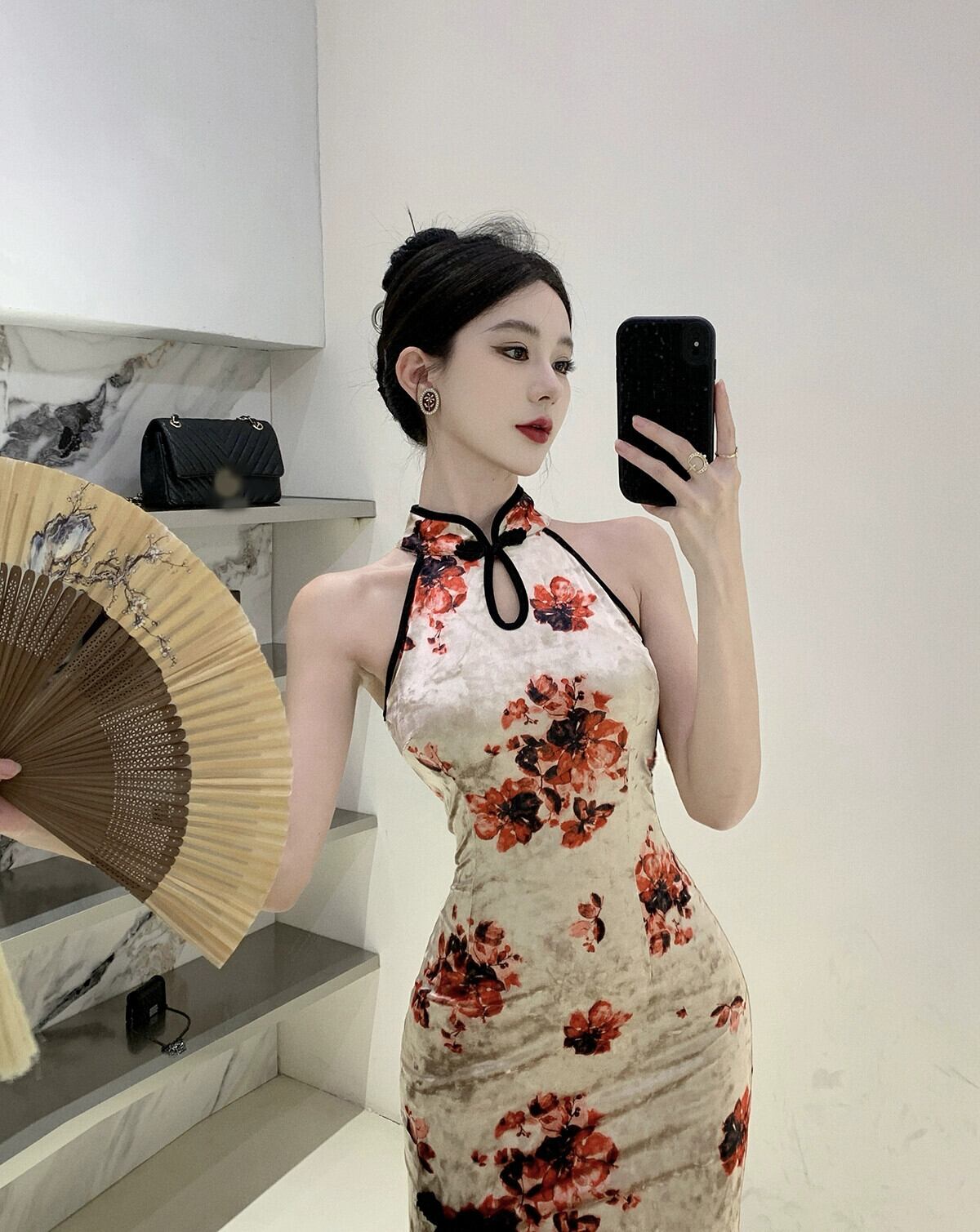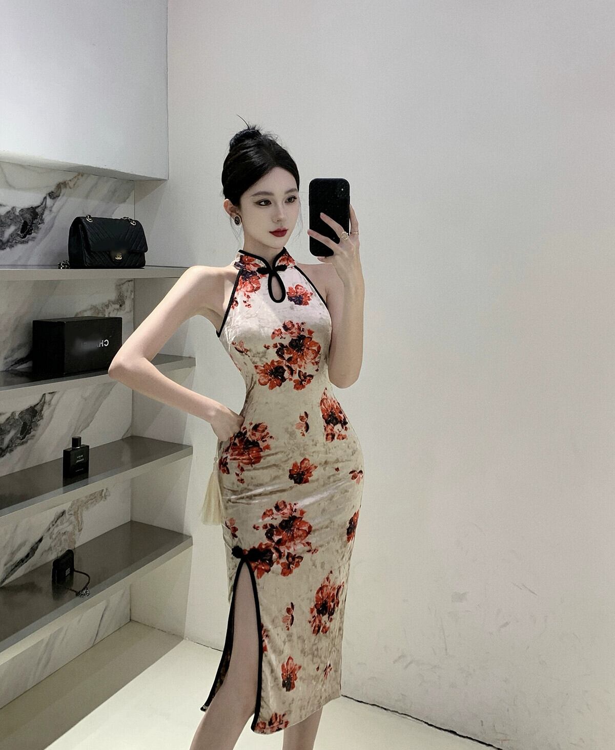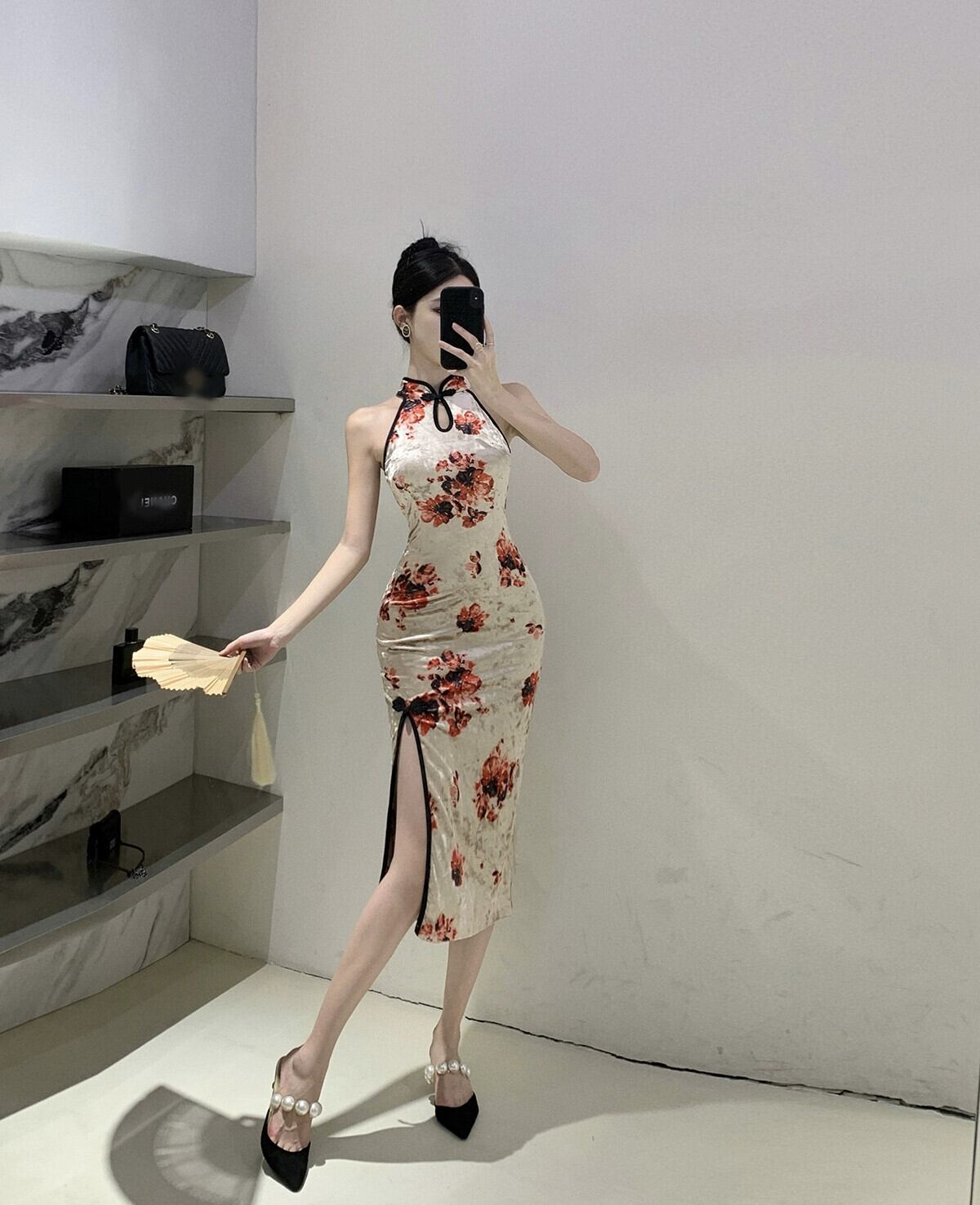 生放送服女性アンカー pogenic ハイエンドヤングスタイルセクシーなスリットゴールドベルベット修正バージョンチャイナドレス yeyij33983548311