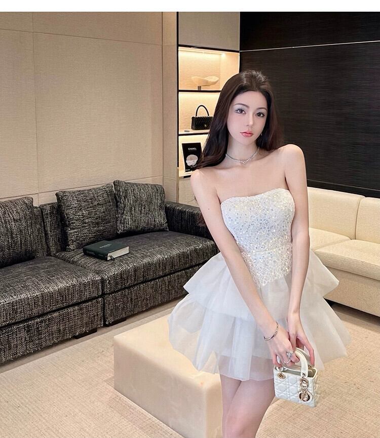 誕生日ドレス、ハイエンドの軽い豪華なニッチプリンセスドレス、大人の白いワンショルダーセクシーなふわふわチューブトップドレス ホワイト yeyij22952088607