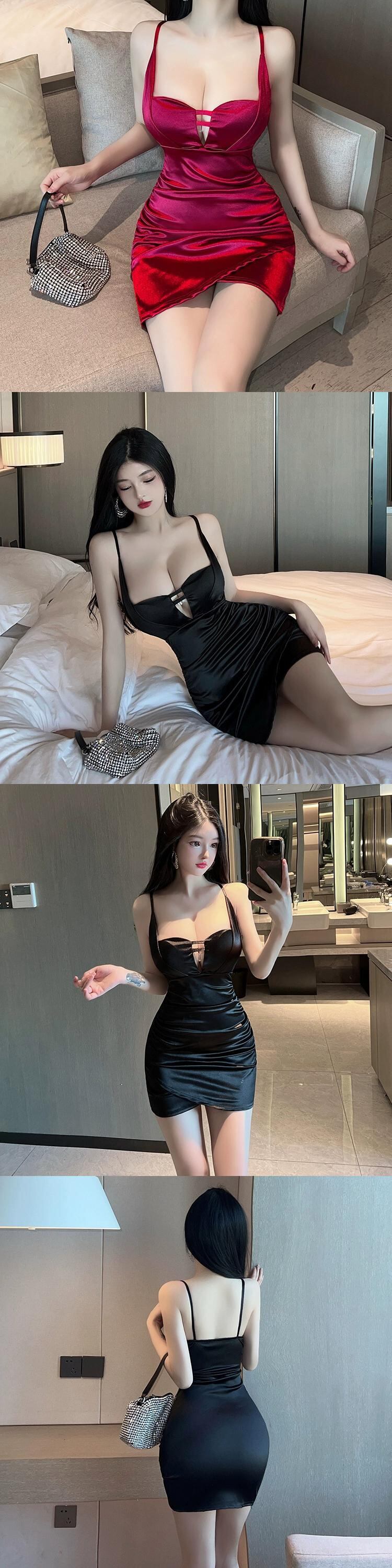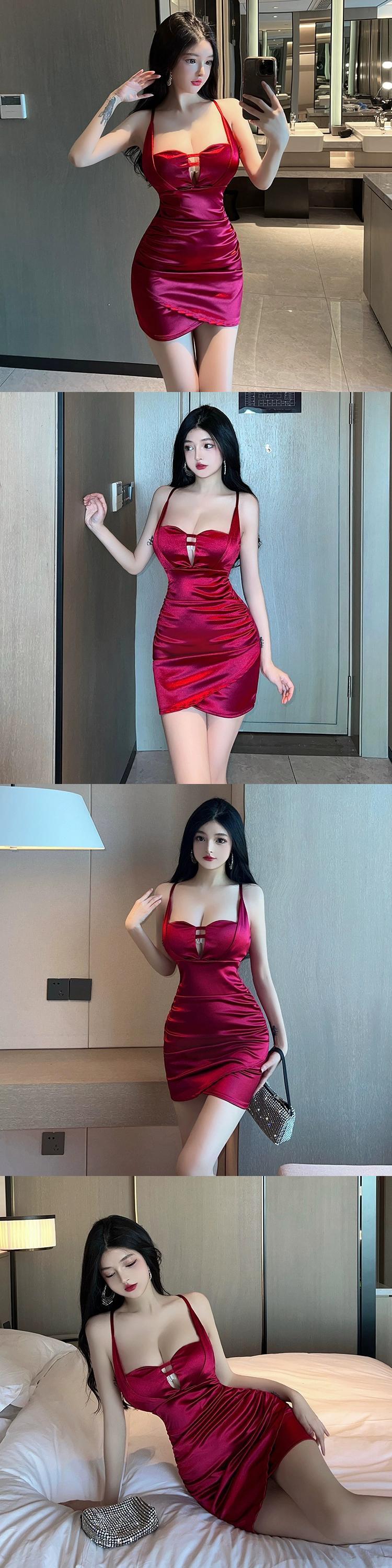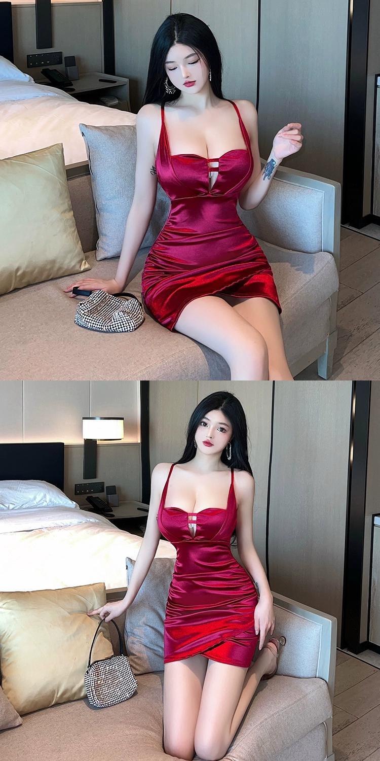 ナイトクラブの女性のナイトクラブの作業服、作業服、高級サテンのセクシーなローカット V ネック サスペンダー ドレス Vネック yeyij29865786721
