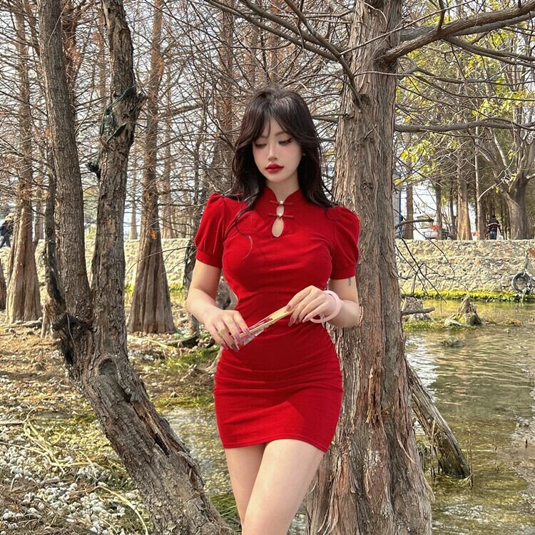 生放送服女性アンカー服pogenic新しい若いパフスリーブセクシーなチャイナドレス改善 yeyij80081023008