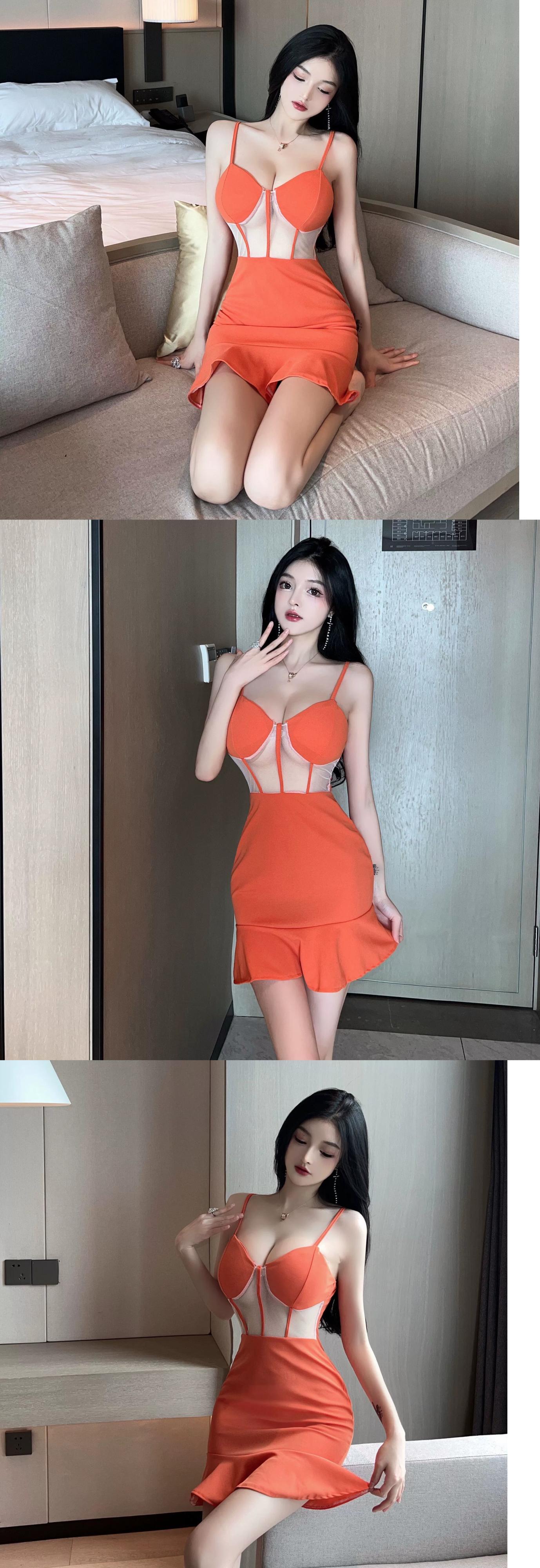 ナイトクラブセクシーな女性のナイトクラブ作業服技術者作業服ローカット V ネックメッシュスプライシングサスペンダードレス Vネック yeyij86222340994