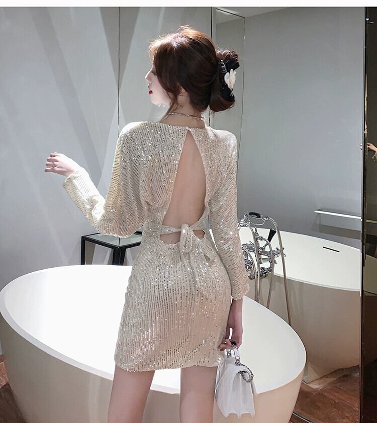 イブニングドレス、ハイエンドの軽い贅沢、ニッチな気質、ナイトクラブとナイトクラブの婦人服、輝くスパンコール、セクシーな中空の背中の開いたドレス yeyij13144818990
