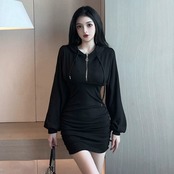 クリスマスがテーマのスウェットシャツ スカート 赤い干支年 セクシーなプリーツ スリミング ヒップハグ フード付きドレス レッド yeyij27389631756
