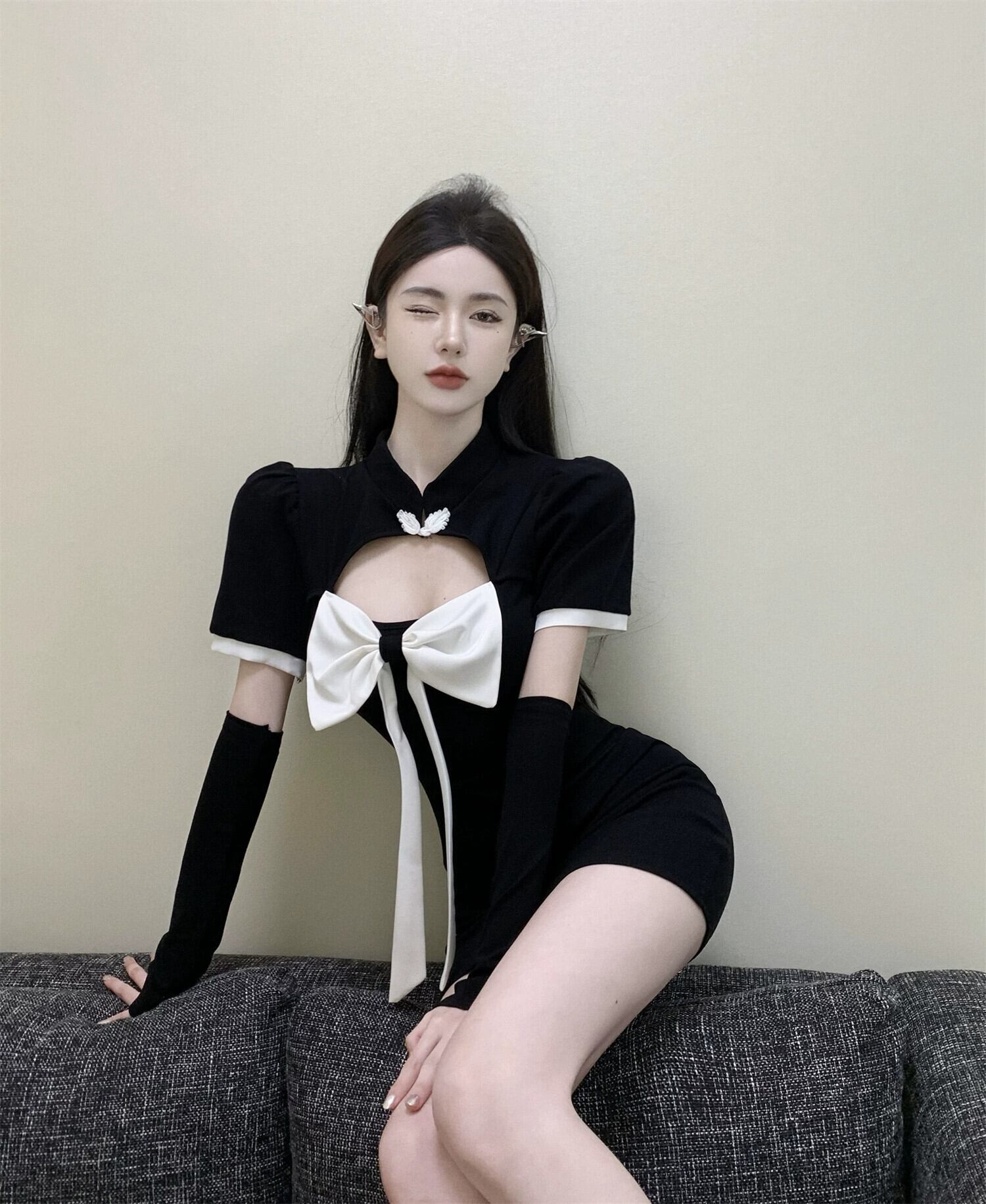 ライブブロードキャスト服女性ダンスアンカー服純粋な欲望スタイル若いセクシーな中空修正されたチャイナドレス ピュア yeyij96923934816