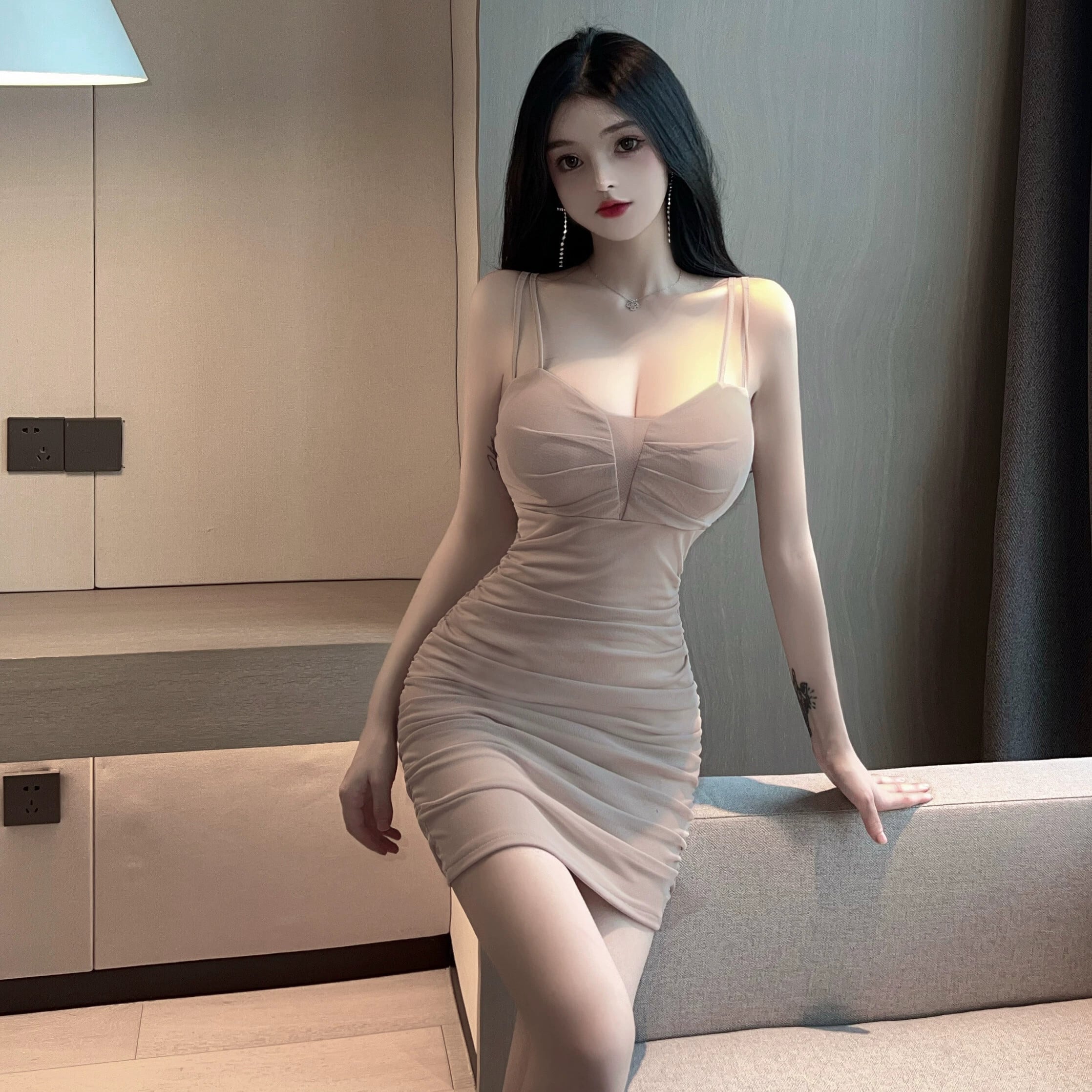 純粋な欲望セクシーなローカットサスペンダードレス女性 2023 新しいナイトクラブネクタイディスコ弾性ヒップカバーミニスカート エラスティック 伸縮 yeyij56989351598