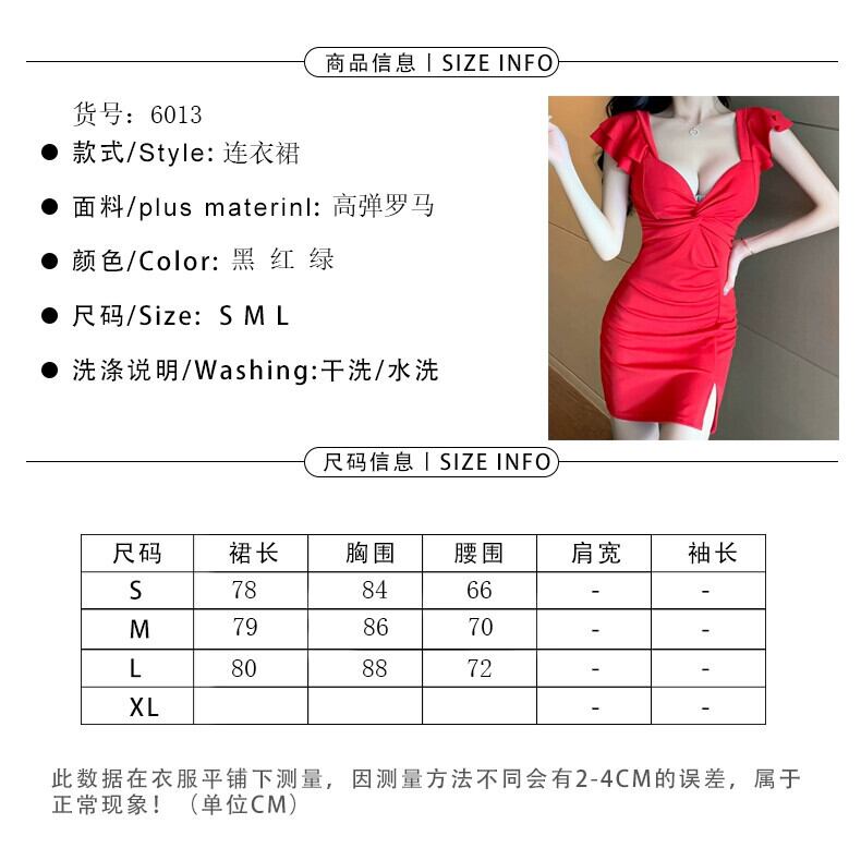 ナイトクラブの女性の作業服、セクシーな作業服、ローカットの深い V ネックのフライング スリーブ スリット ヒップハグ ドレス Vネック yeyij94769079322