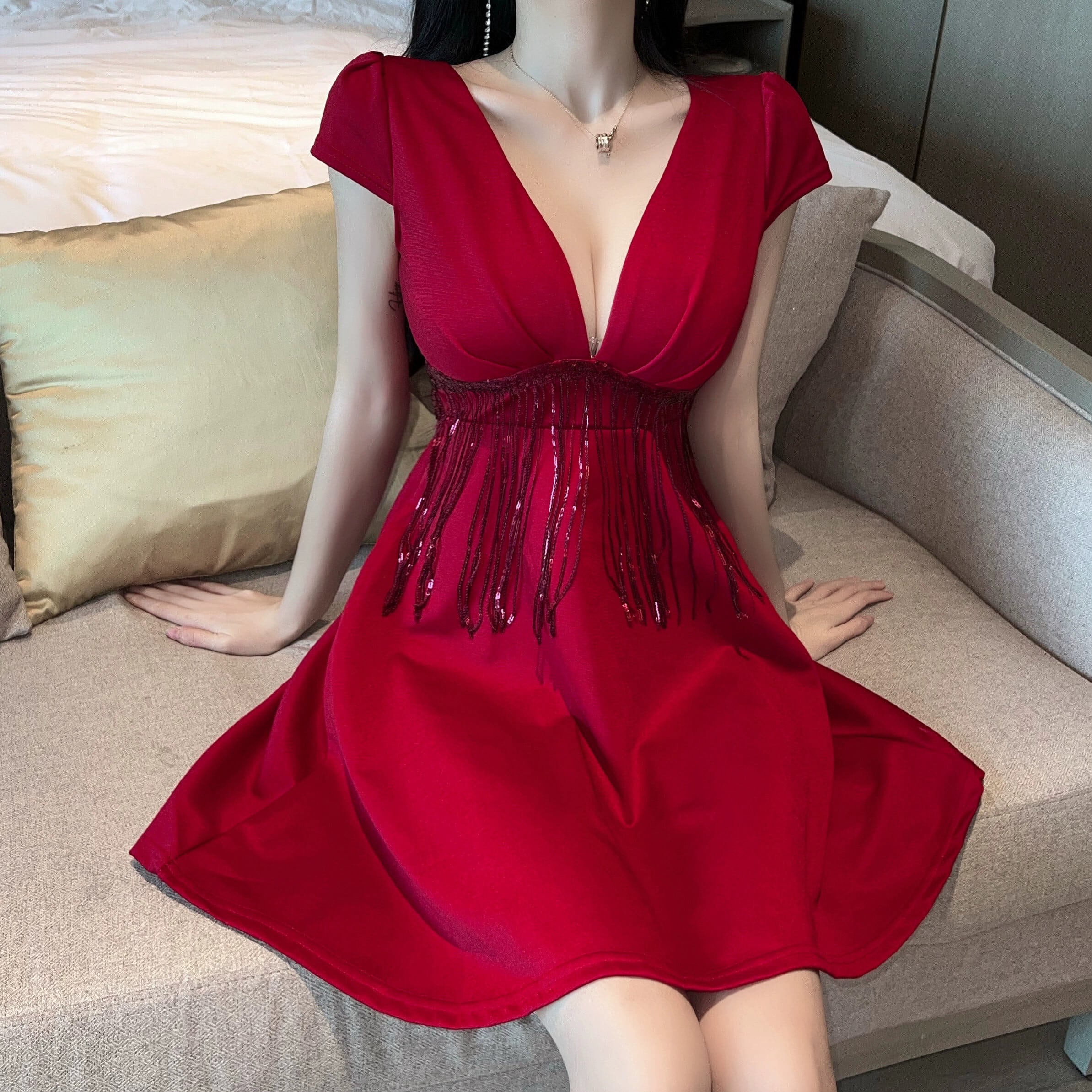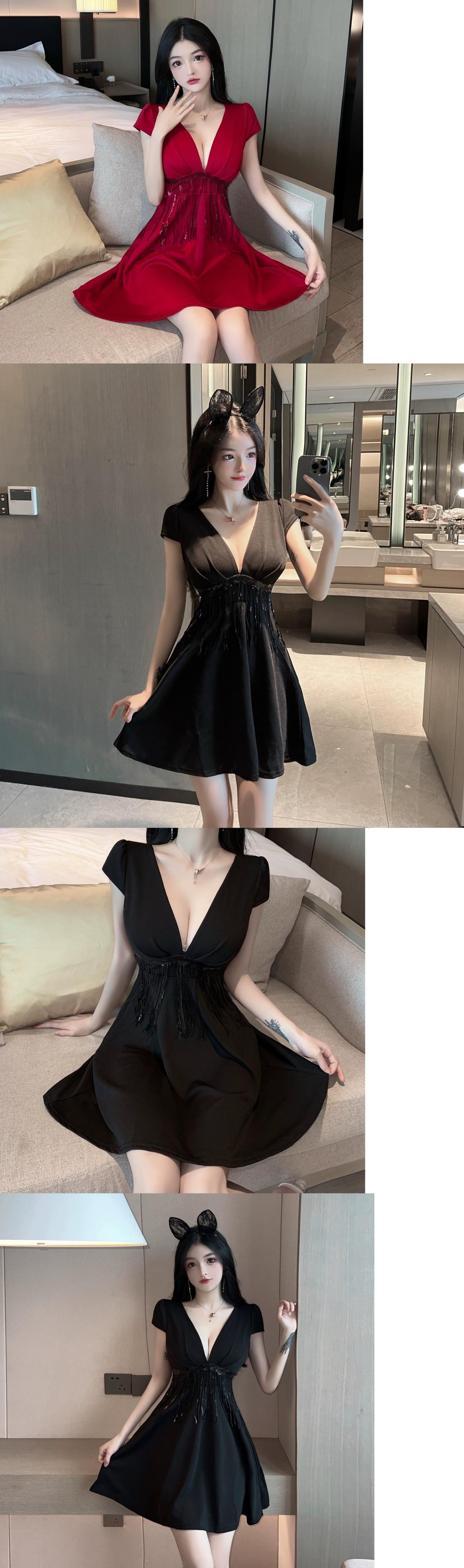 ナイトクラブの女性のナイトクラブのセクシーな作業服ローカットディープ V ネックスパンコールテルウエスト痩身ドレス Vネック yeyij42190193545