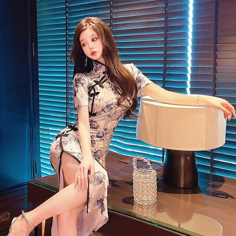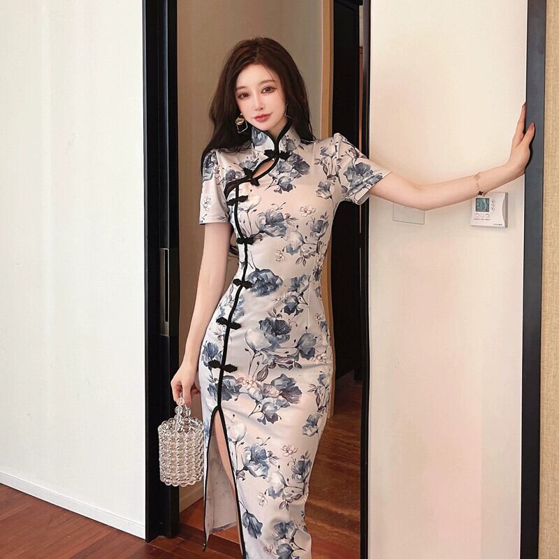 改良改良されたチャイナドレス 2023 新しい若いスタイルのレトロな中華民国スタイルのセクシーなハイスリット ミドル丈ドレス yeyij43229163845