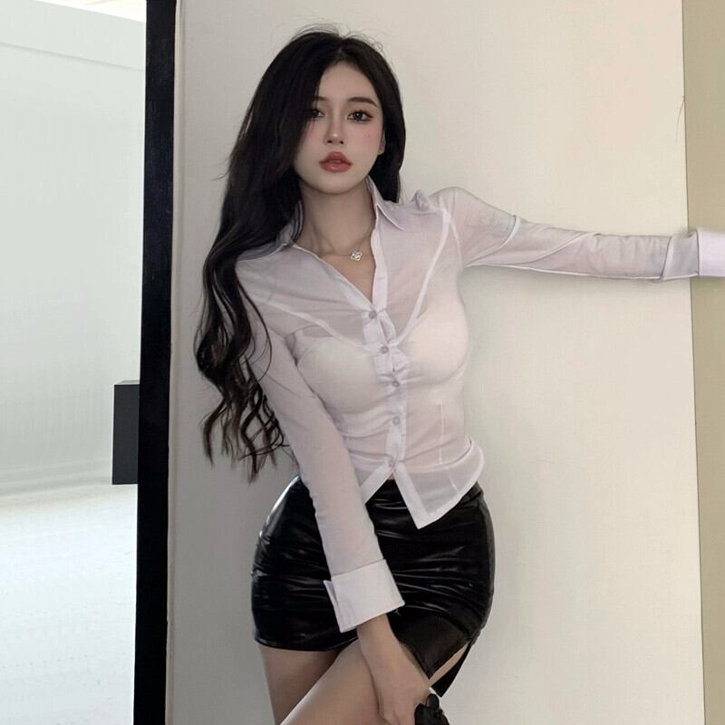 セクシーな純粋な欲望秘書 JK スーツ女性の秋のタイトなタイトなシャツとネクタイ + ウエストカバーレザーヒップスカート オータム 秋物 ピュア yeyij37303561907