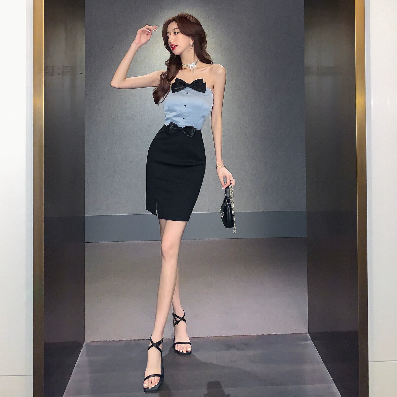 フレンチミニドレスショートスチュワーデスユニムOL作業服プロフェッショナル気質フェミニンヒップハグチューブトップドレス yeyij56712531971