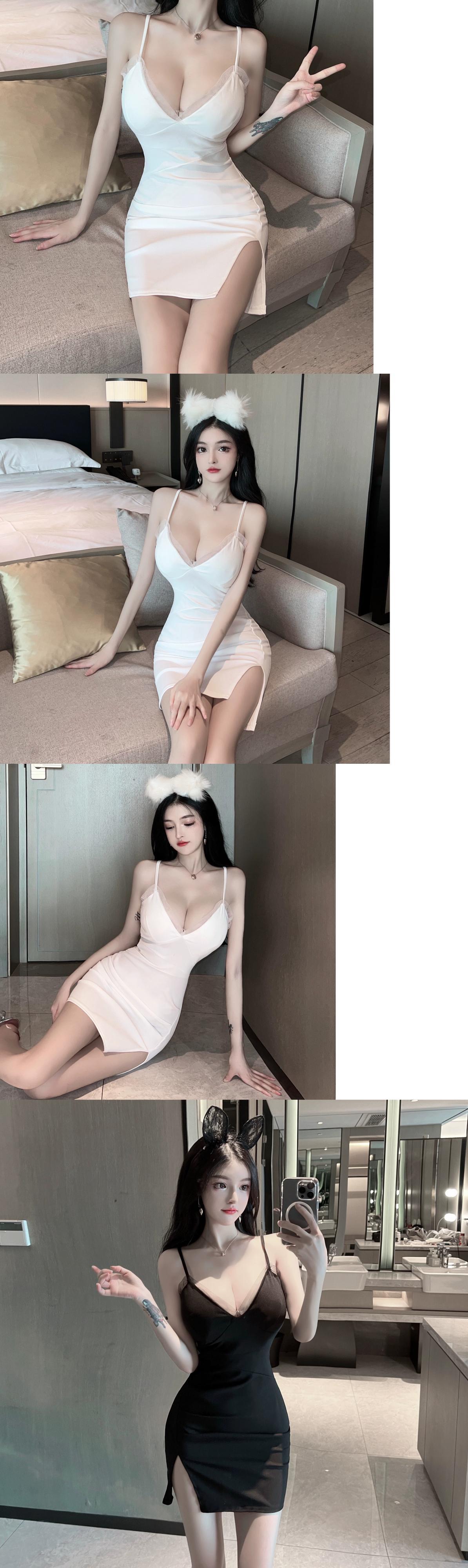 ナイトクラブの女性のナイトクラブ作業服メッシュスプライシングショートスカート作業服セクシーなローカットディープ V ネックサスペンダードレス Vネック yeyij45941928409