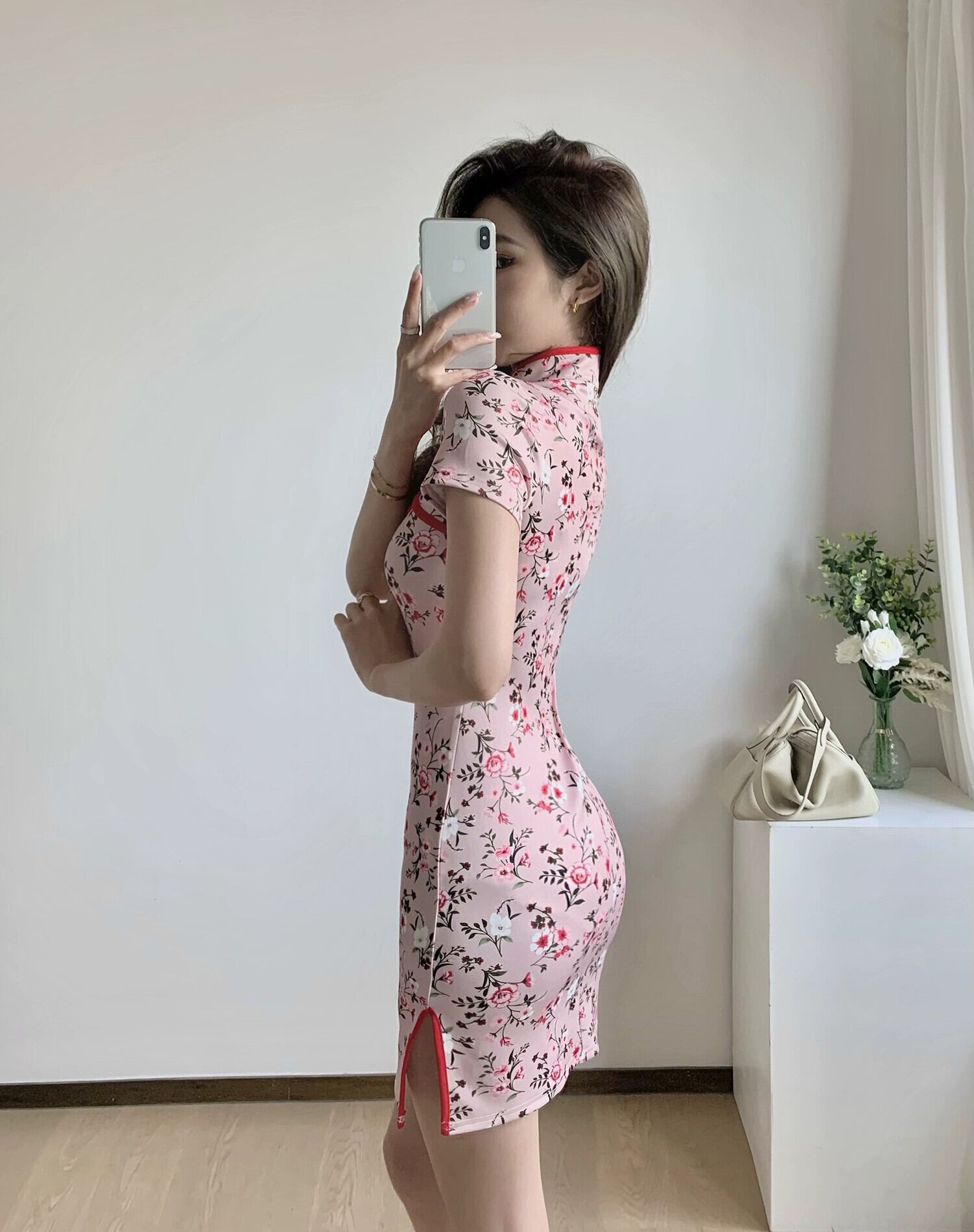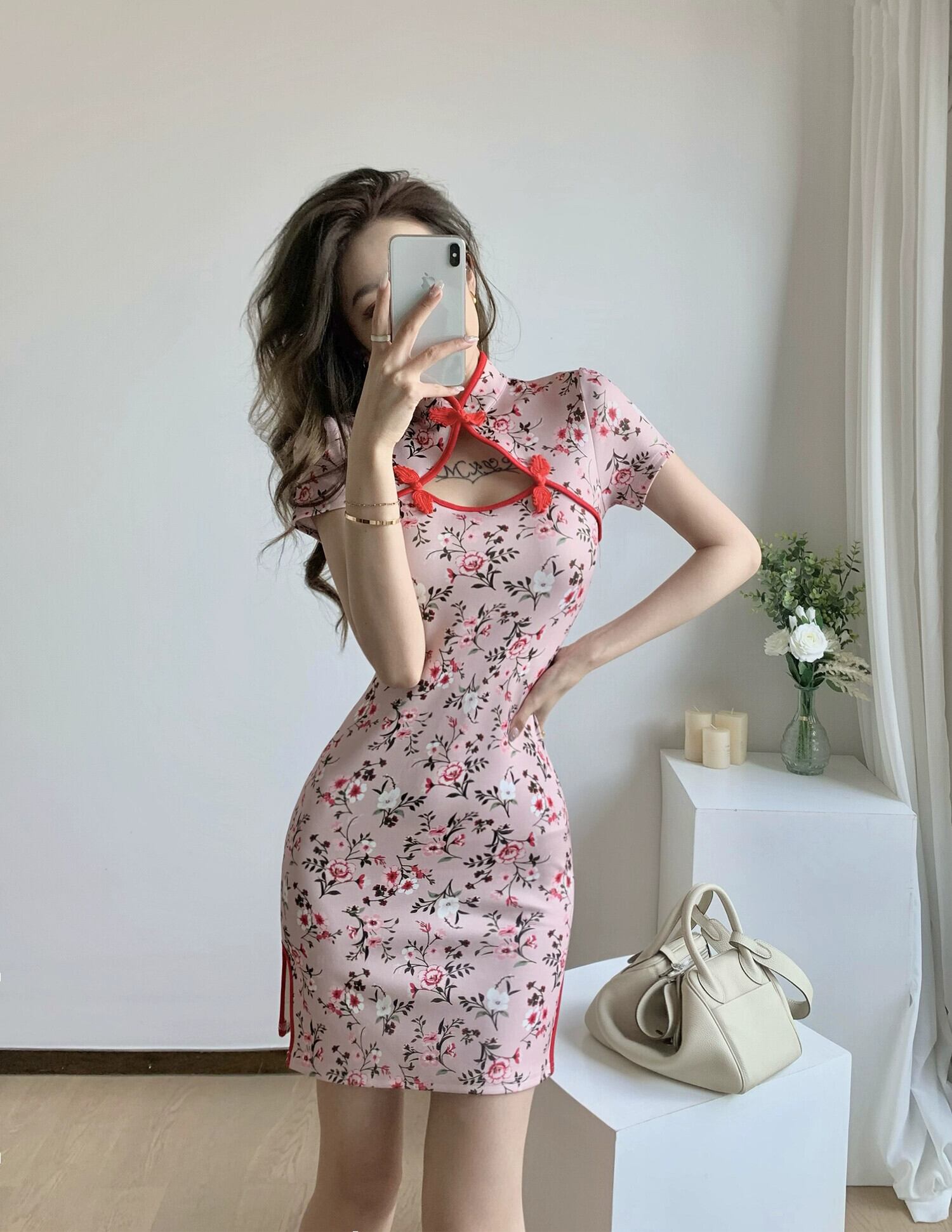 生放送服女性アンカー pogenic 若い中国風花柄セクシーな中空修正チャイナ ドレス yeyij42457539826