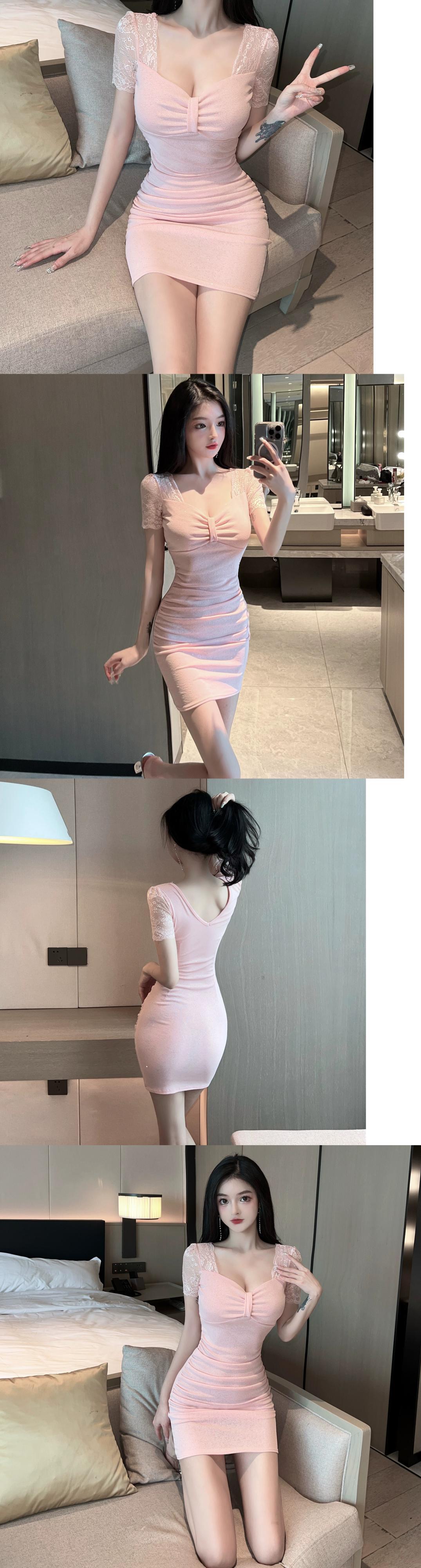 ナイトクラブの女性のナイトクラブ作業服技術者作業服ショートスカートレーススプライシングセクシーな V ネック半袖ドレス Vネック yeyij5690802884