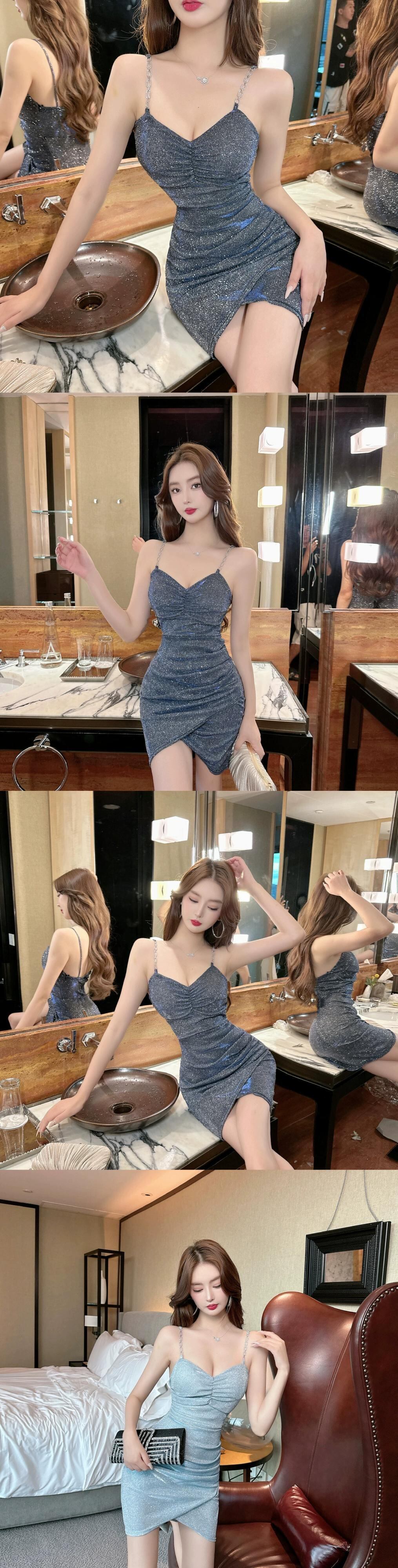 ナイトクラブ女性バーナイトクラブスパークリングシルクドレス宴会気質セクシーな不規則なヒップハグサスペンダードレス yeyij41476948623