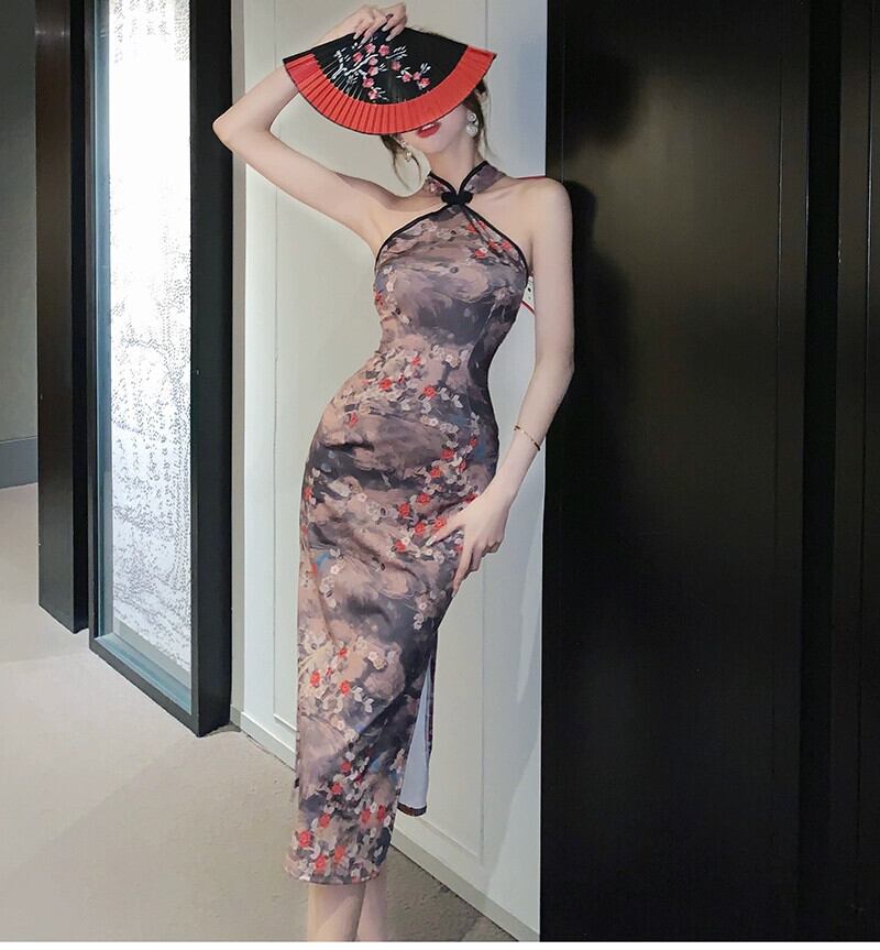 チャイナイブニングドレスロングスカート女性ハイエンド高級ニッチパーティー気質セクシーなオフショルダーホルターネックドレス yeyij3990461181