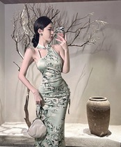 チャイナドレス若いアンカー生放送ハイエンドイブニングドレス改良されたセクシーな中空スリットオフショルダーホルタードレス yeyij5564206995