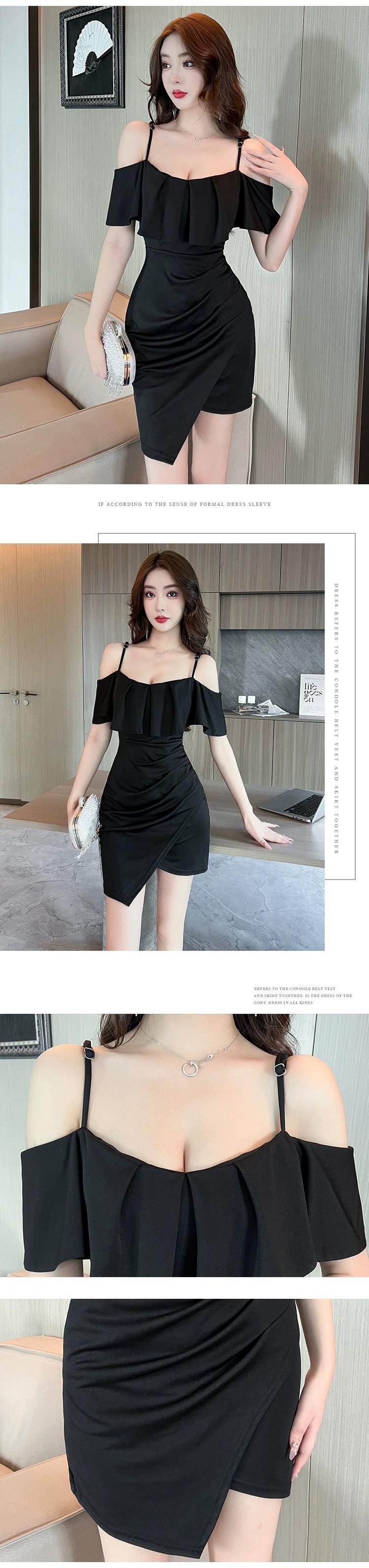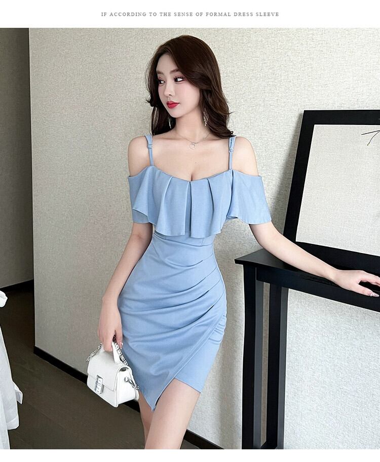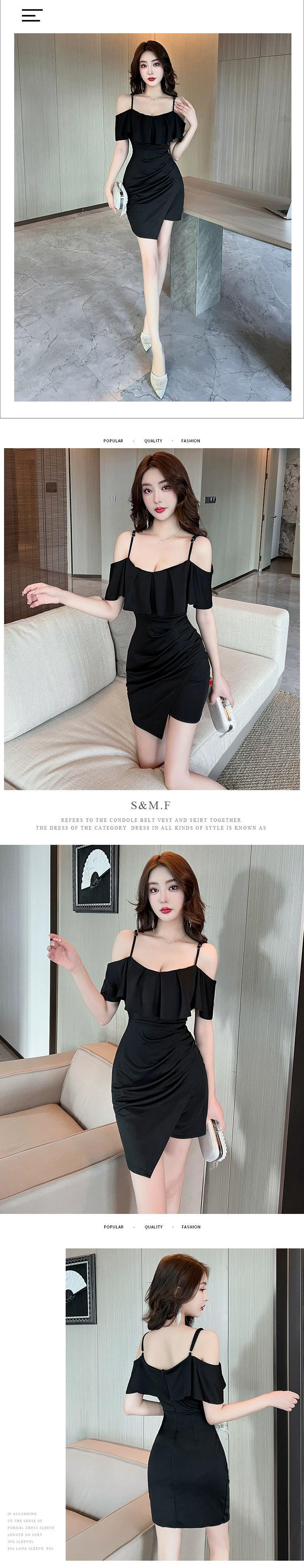 ナイトクラブの女性の作業服ショップ技術者作業服気質スリムセクシーなフリルワンショルダーサスペンダードレス yeyij59479138739