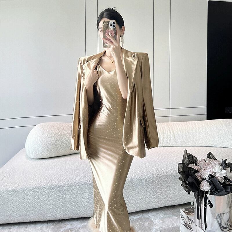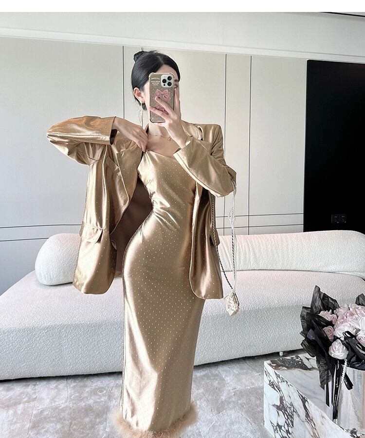 色:シャンパンショートコート,シャンパンサスペンダードレス