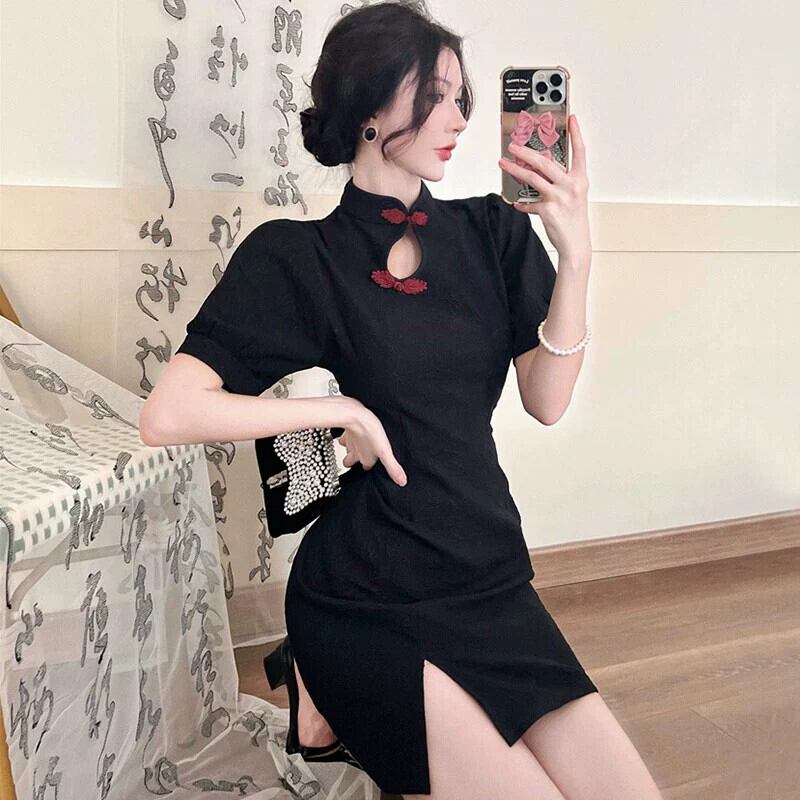 生放送服女性アンカー服若い中国風セクシーなスリット中空改良版チャイナドレス yeyij76696872147
