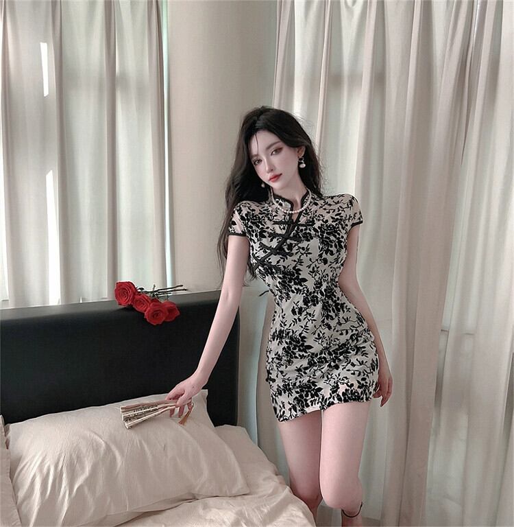 生放送服女性アンカー服セクシーな若いレトロ花柄ショートチャイナドレス改良版 yeyij2249420962