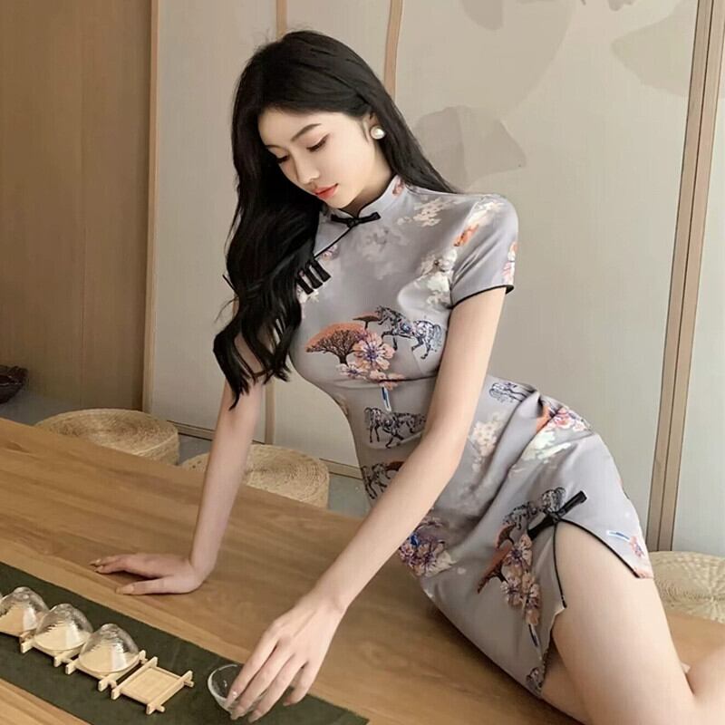 生放送服女性アンカー pogenic 若いセクシーなレトロプリントショート修正チャイナドレス yeyij17428494547