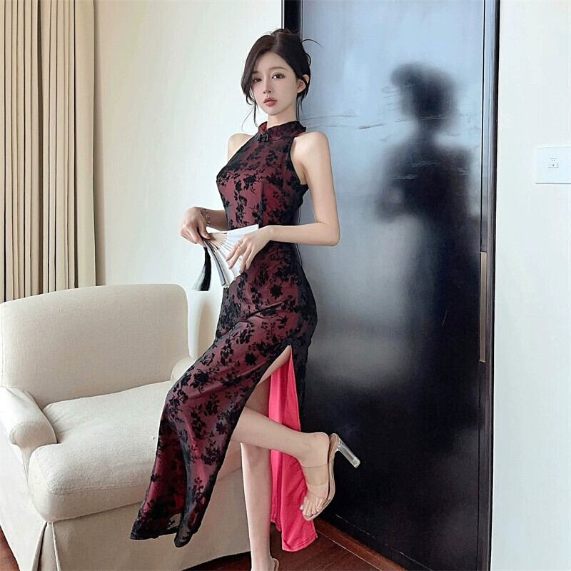 改良されたチャイナドレスイブニングドレスロングスカート女性ハイエンドレトロ中国風の休暇ドレススリムセクシーなメッシュドレス yeyij39632843064