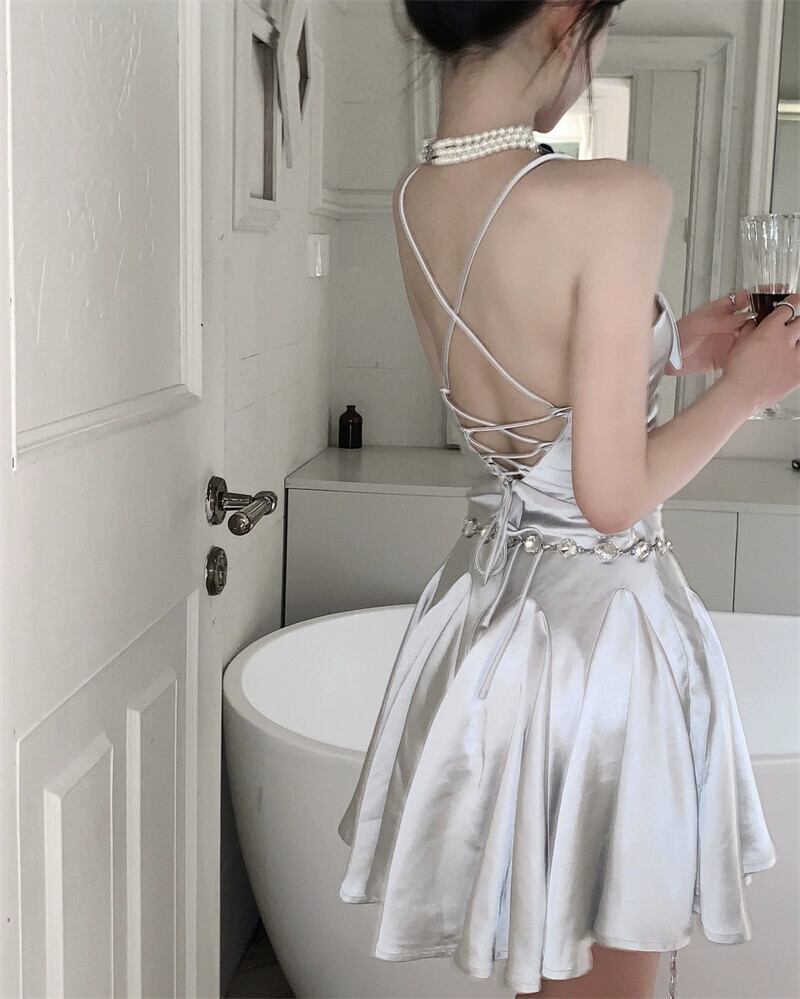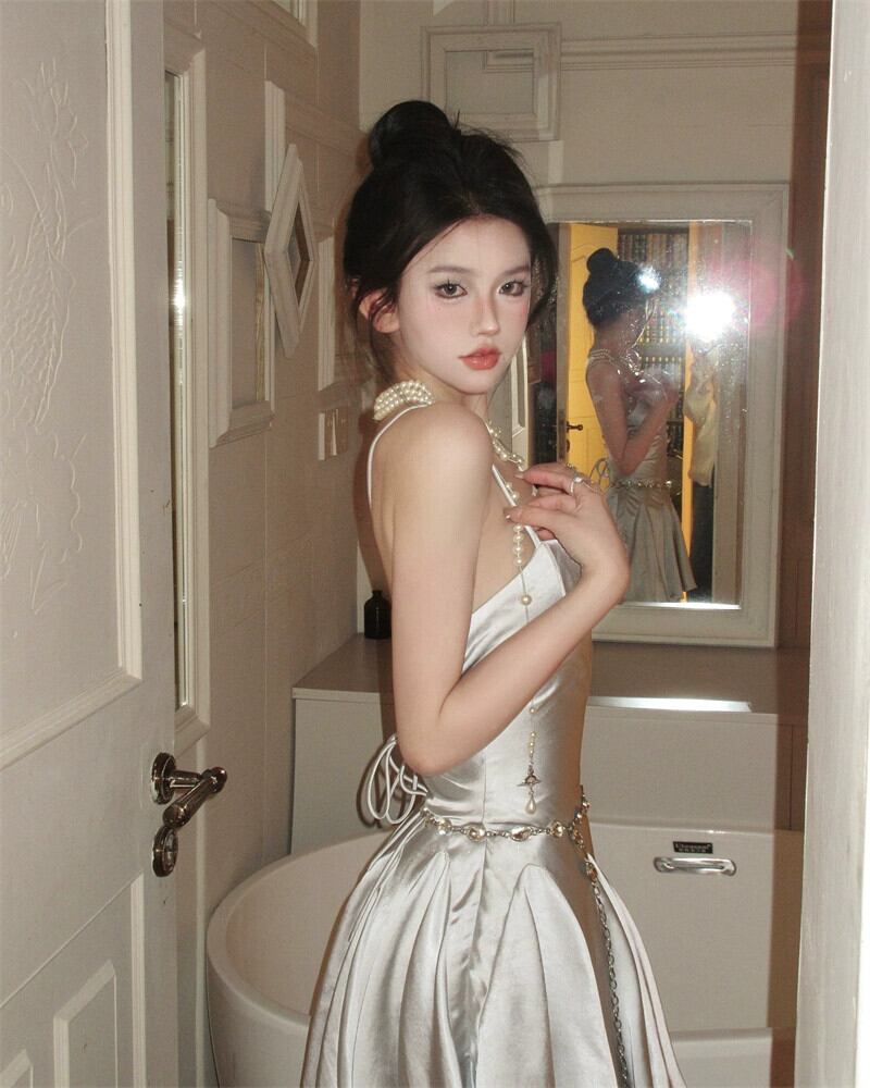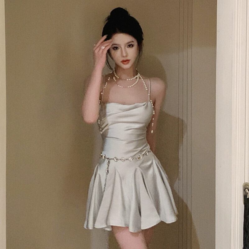 誕生日ドレスの女性フレンチハイエンドライト高級ニッチハイエンド光沢のあるセクシーな背中の開いたふくらんサスペンダードレス yeyij87915736086