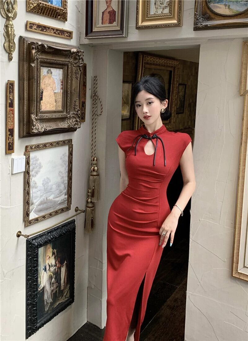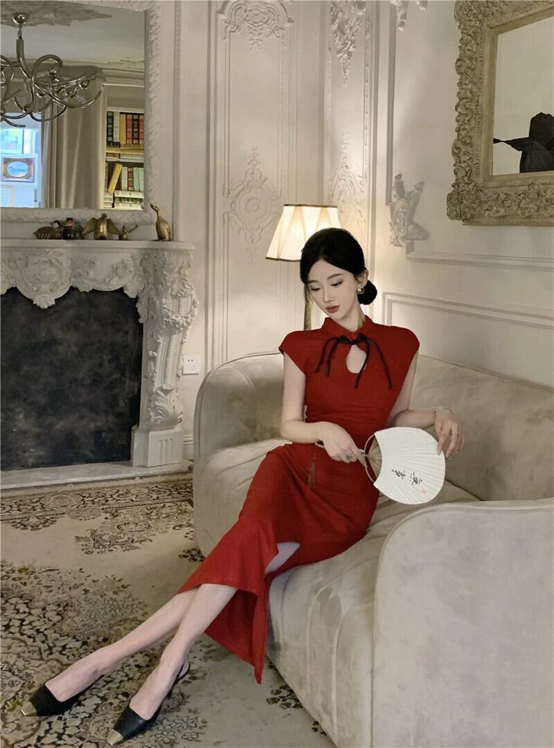 中国風のチャイナドレス新しい2023夏若い毎日の全国トレンドが改善されたスリムなミドル丈のドレス サマー 夏物 yeyij23696013495