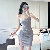 フレンチ パーティー ドレス、ハイエンド、フェミニン、女神スタイルのサテンのセクシーなショート ヒップハグ サスペンダー ドレス yeyij61526566045