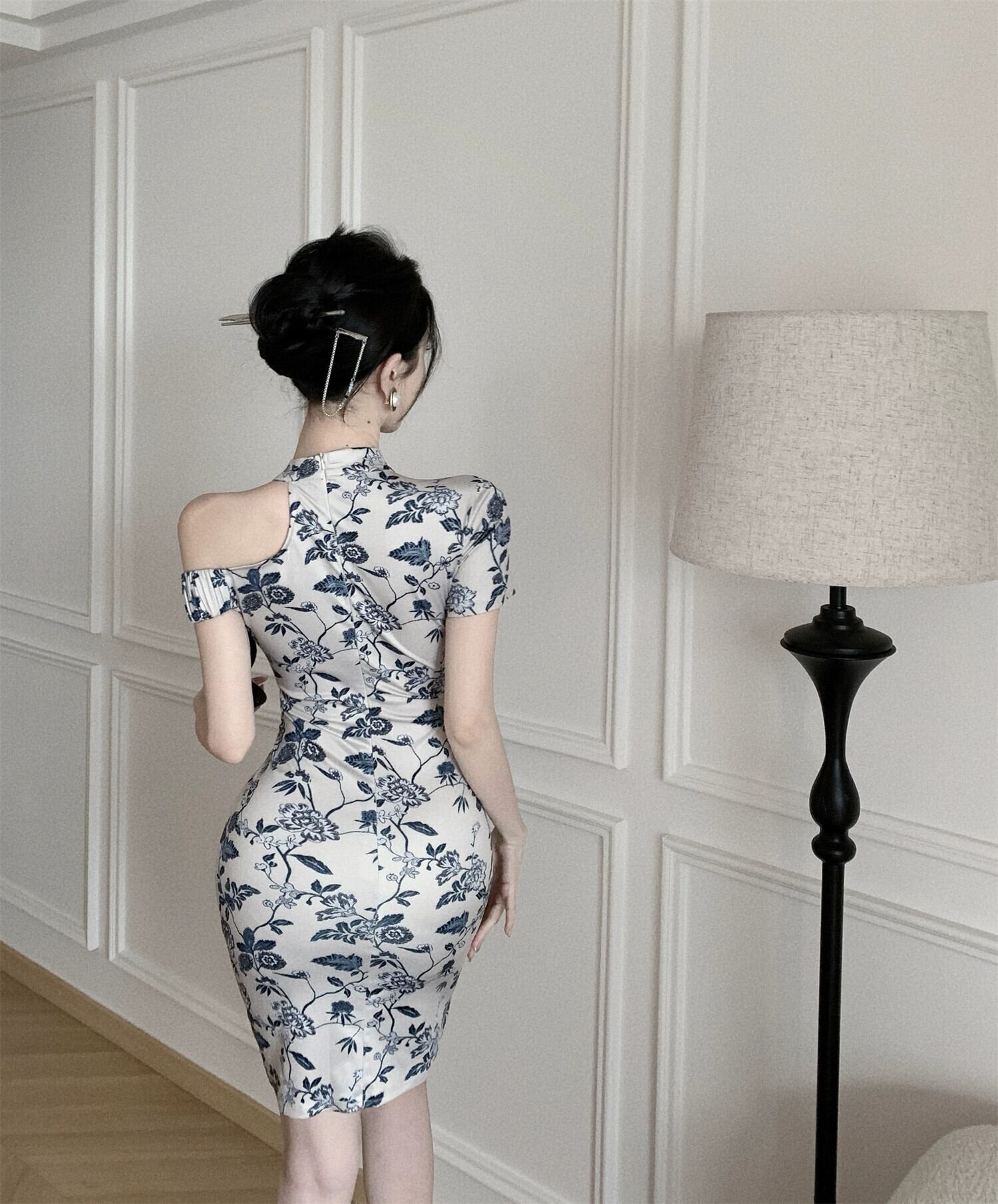中国チャイナドレス 2023 アンカー改良少女セクシーな中空肩ホルタードレス yeyij62830309519