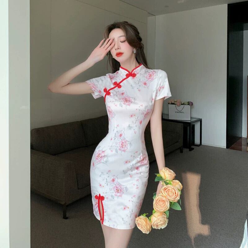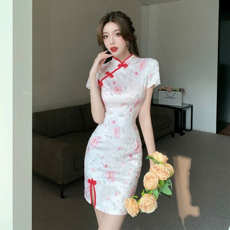 生放送服女性アンカー服セクシーな中空若い花柄ショートチャイナドレス改良版ドレス yeyij49074042975