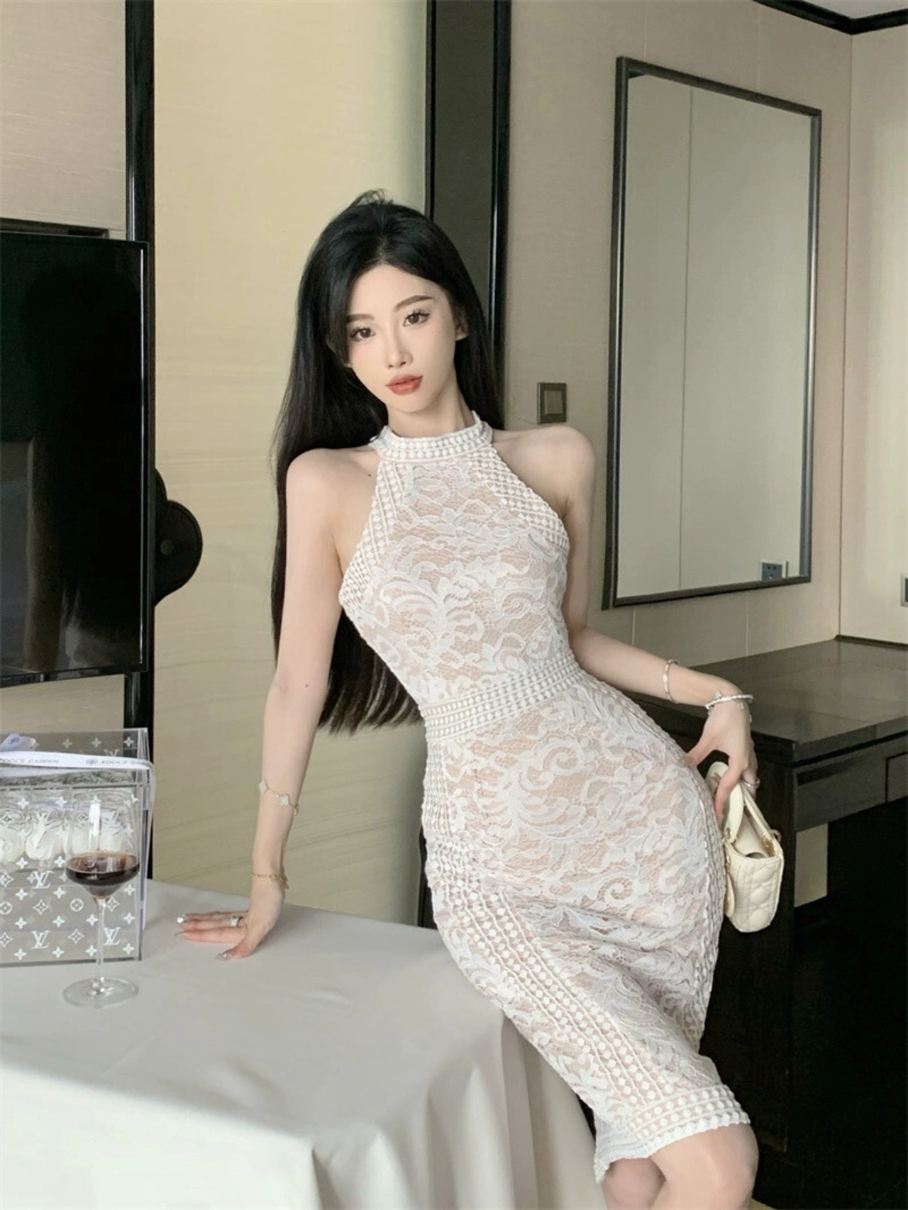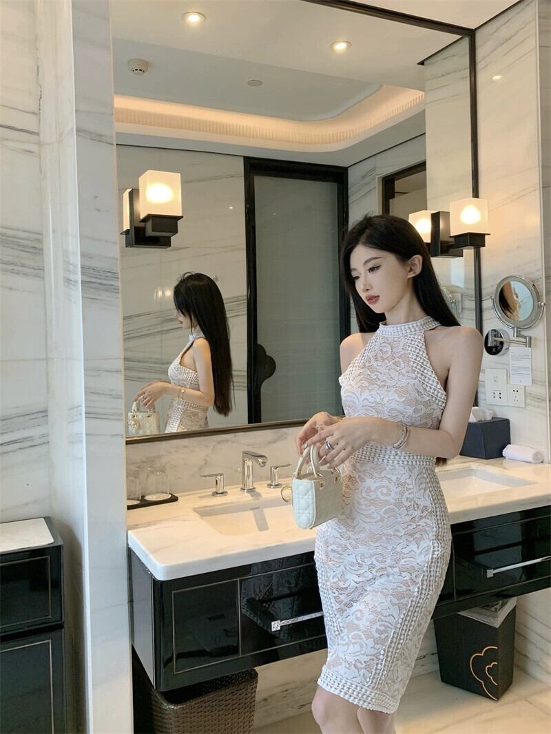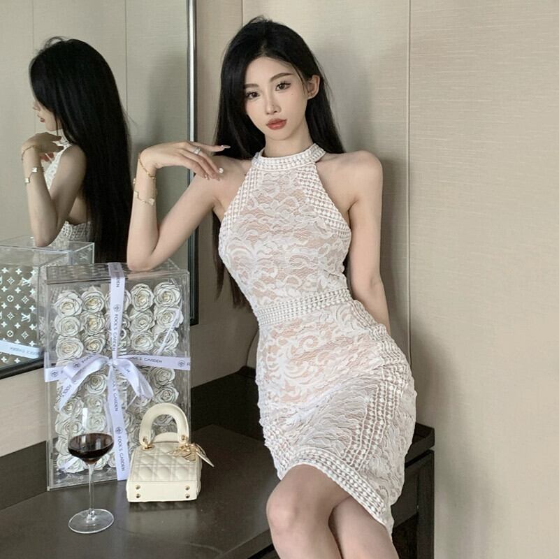 気質ドレス女神スタイルパーティー気質ハイエンドスリムセクシーなオフショルダーホルターネックレースライトドレススカート yeyij80312697089