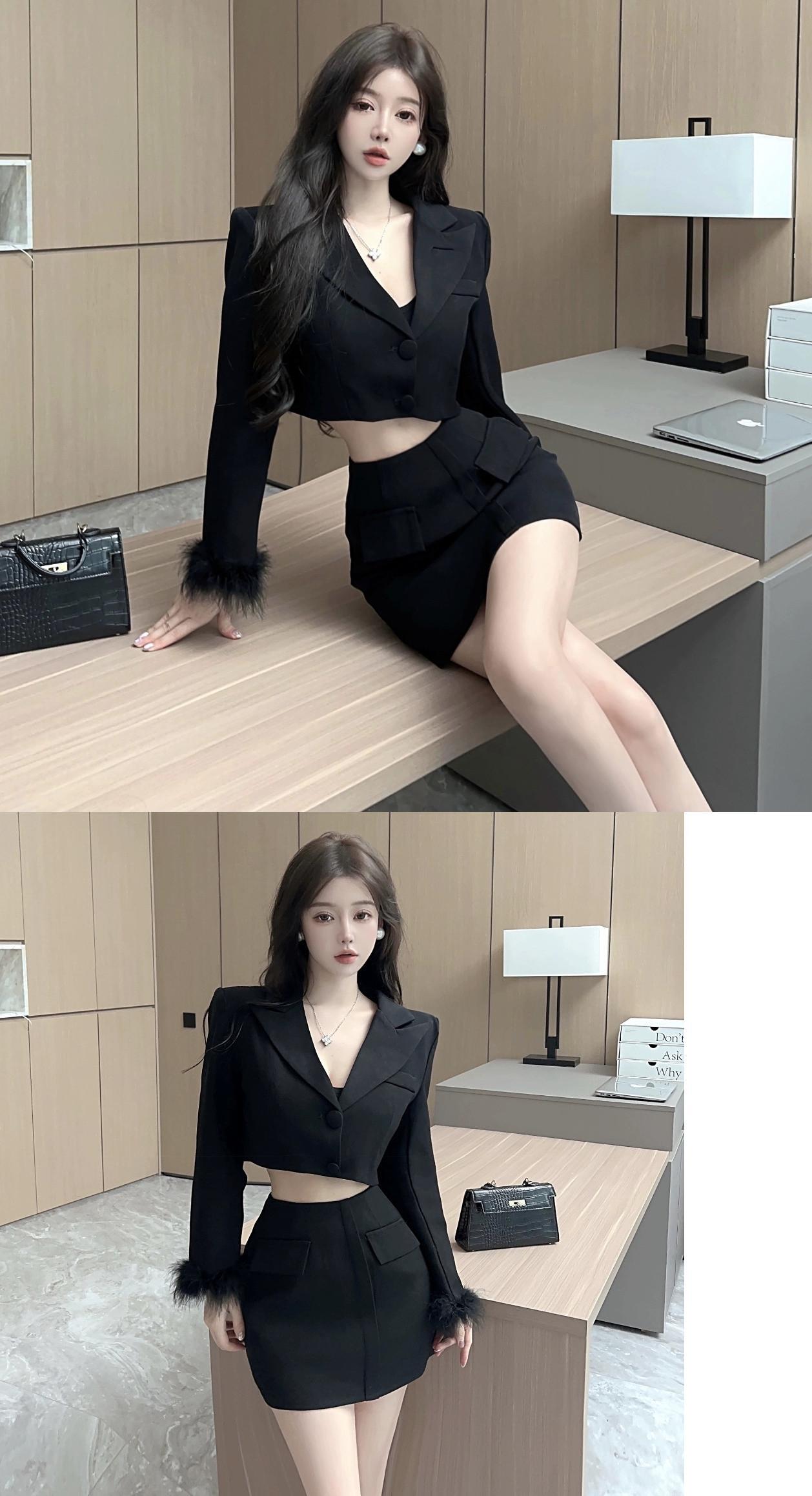 初秋のYouayoushaスーツ女性、ネットセレブのセクシーなショートスーツトップ+ハイウエストスカートの2点セット ハイウェスト オータム 秋物 yeyij87750805468