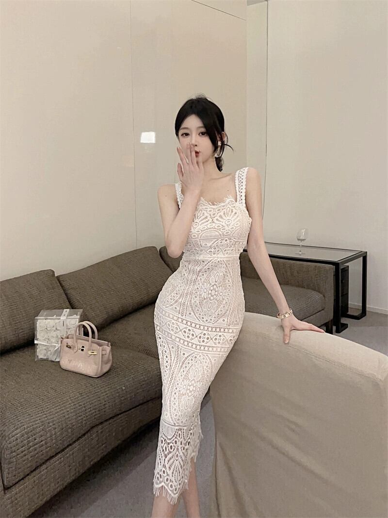 レースイブニングドレスの女性 2023 新スタイルハイエンドかぎ針編み中空パーティーパーティー宴会気質セクシーなサスペンダードレス yeyij61435779412