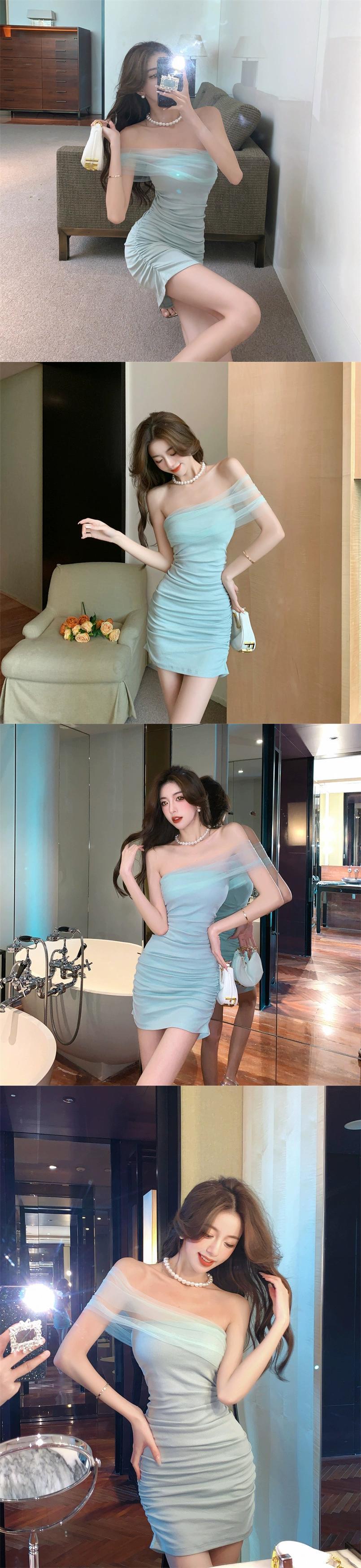 パーティードレスの女性、ハイエンドの淑女のような気質メッシュセクシーなワンショルダーショートヒップハグチューブトップドレス yeyij93874902783