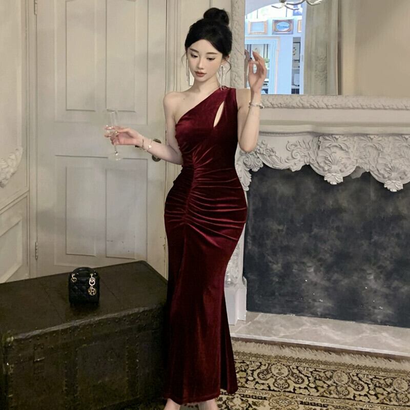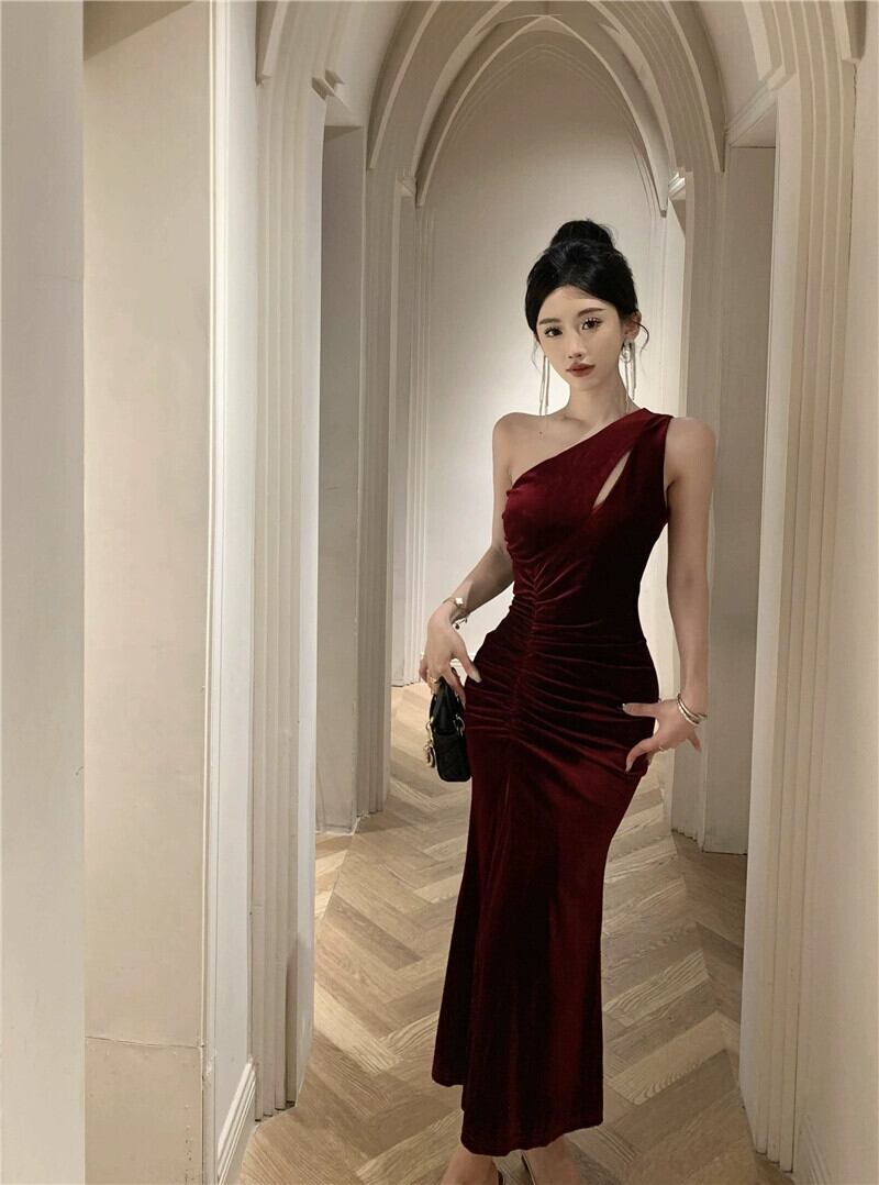 イブニングドレスの女性、ハイエンド、シンプルでエレガントな新年パーティー宴会ロングドレス、セクシーなスラントカラーワンショルダーオフショルダードレス yeyij86028048177