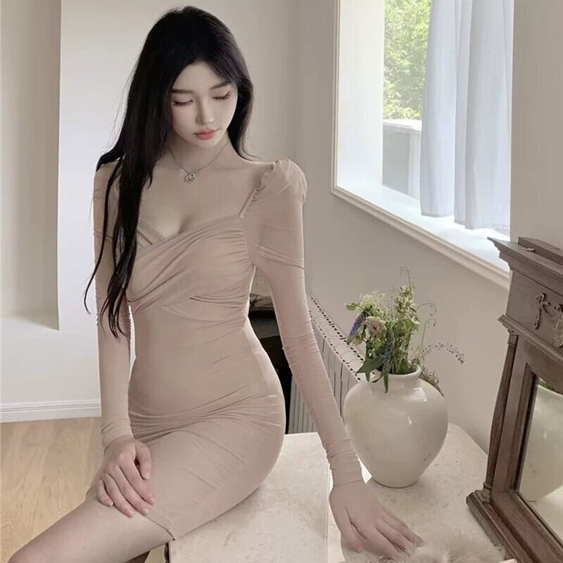 女性の 2023 秋の新しいスタイルの淑やかな気質純粋な欲望セクシーなクロススクエアネックメッシュヒップカバーボトリングドレス オータム 秋物 ピュア スクウェア yeyij45415112672
