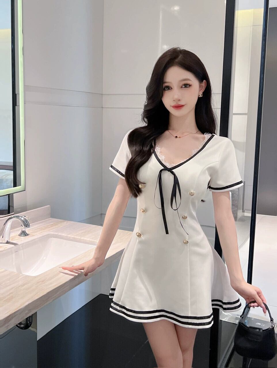 ナイトクラブレディースナイトクラブ作業服作業服技術者作業服ネイビーユニム半袖セクシーなVネックドレス yeyij59731756659