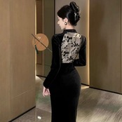 チャイナドレスイブニングドレスハイエンドライト高級ニッチ女性のハイエンド年次総会気質新しい中国風のブラックゴールドベルベットドレス yeyij98109715396
